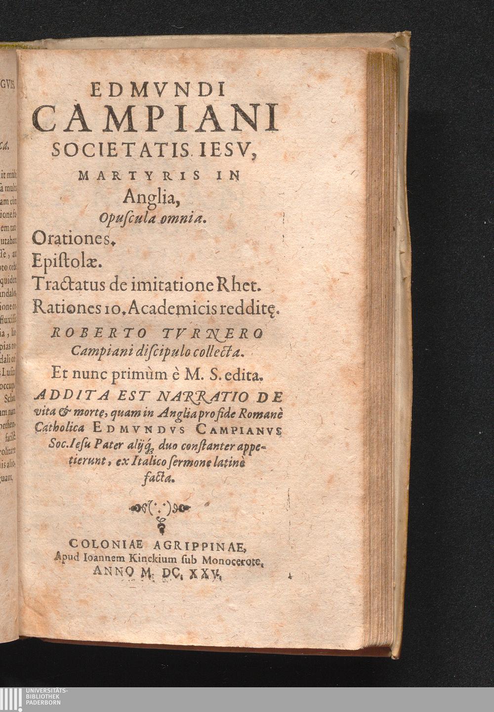 [Edmvndi Campiani Societatis Iesv, Martyrtis In Angli, Opuscula omnia.]