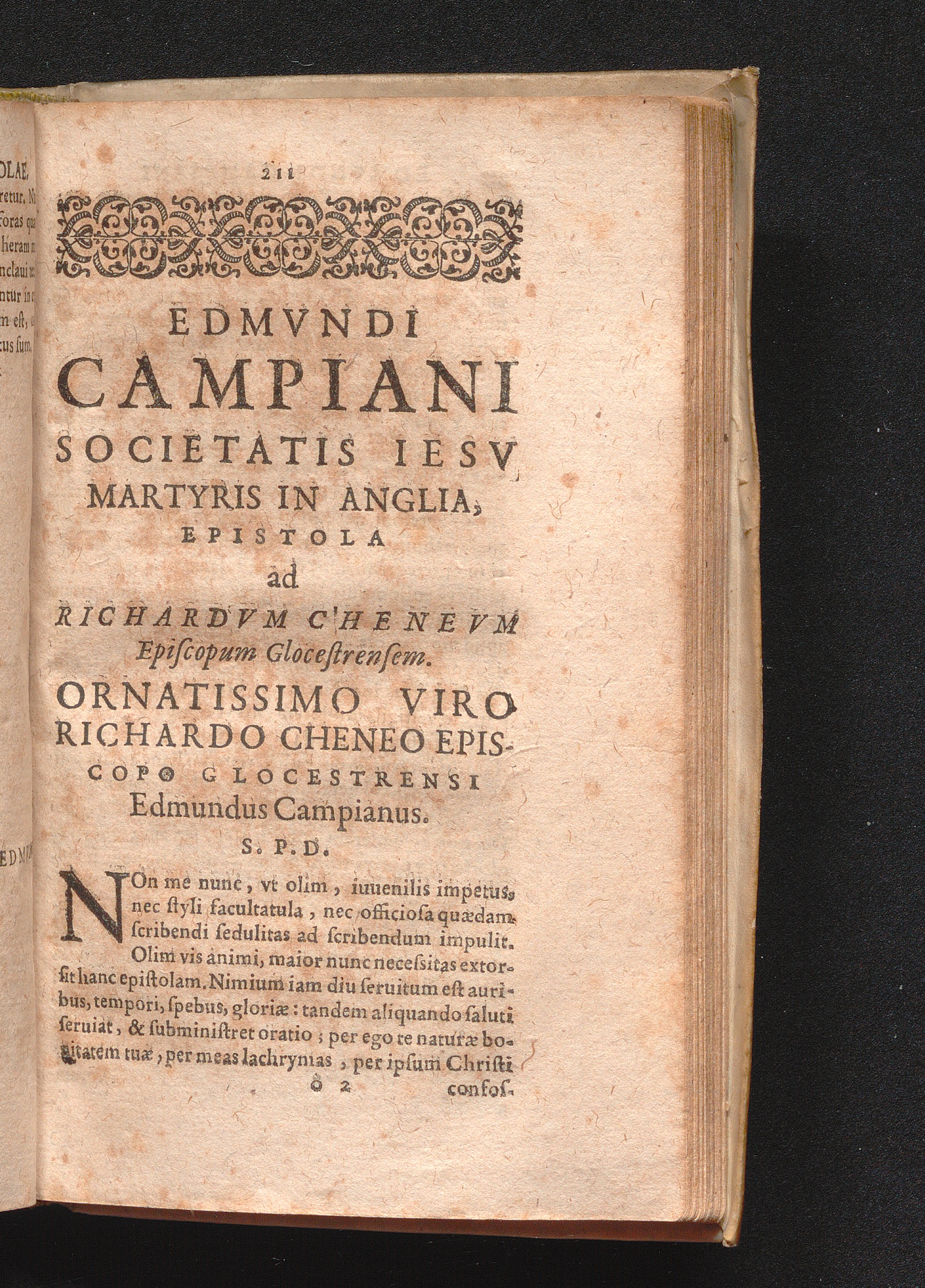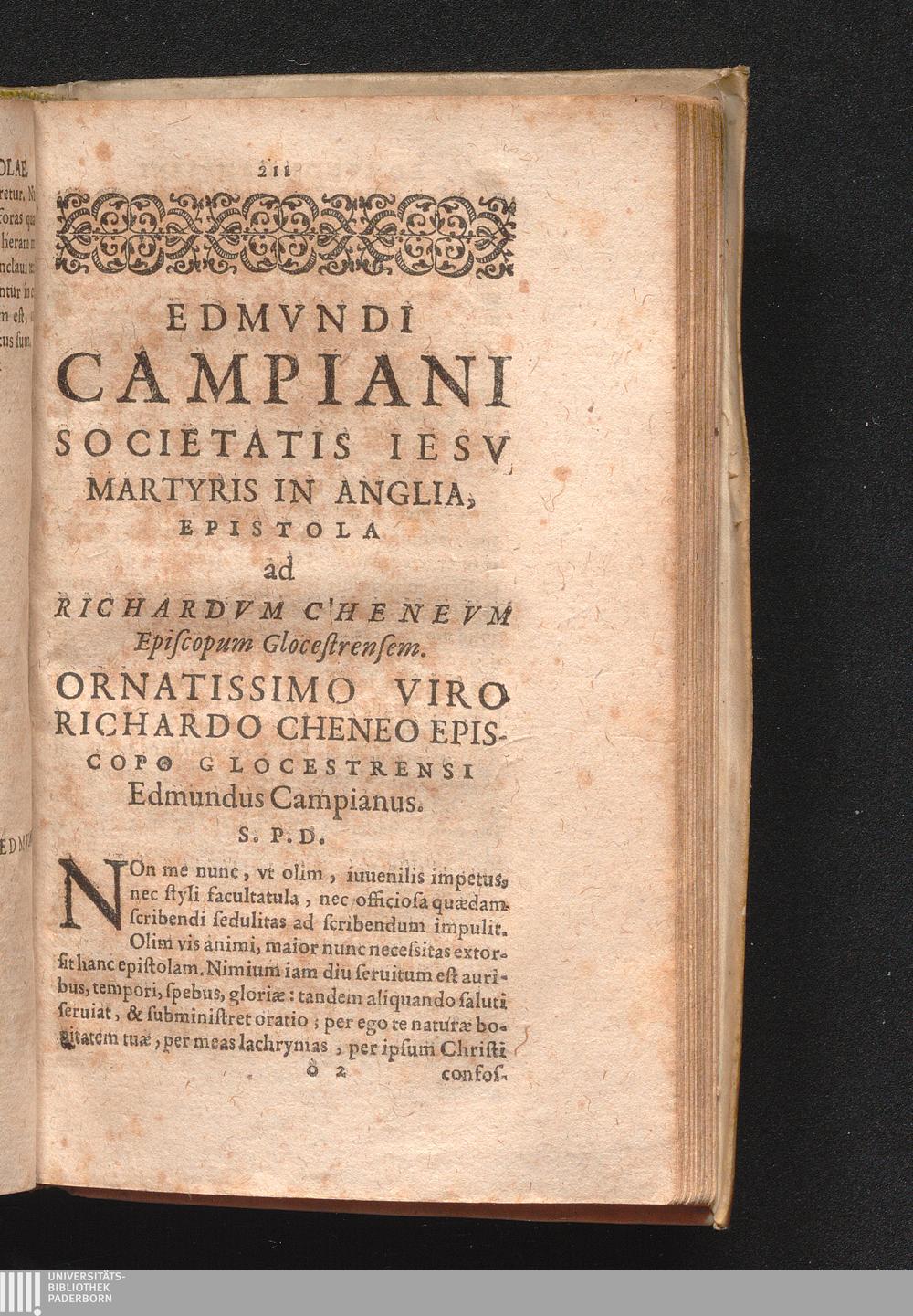 [Edmvndi Campiani Societatis Iesv Martyris In Anglia, Epistola ad Richardvm Chenevm[...]