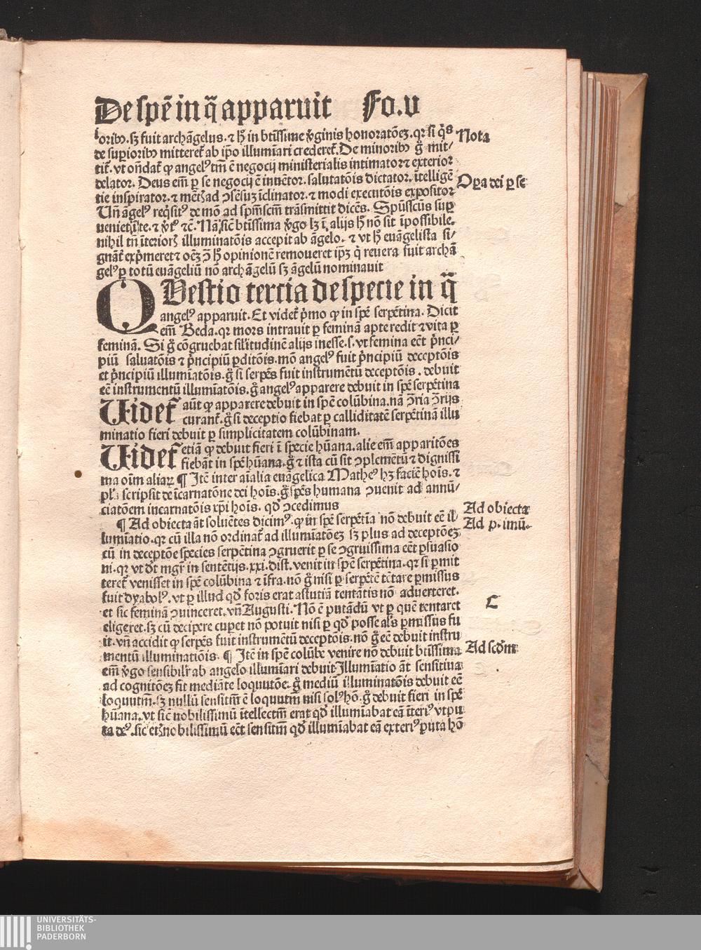 Questio tertia de sp[eci]e in qua angelus apparuit.