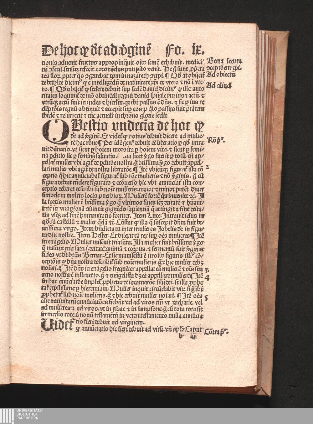 Questio vndeci[m]a de h[ora] q[uod] d[ixi]t ac virgine[m] [et] no[n] muliere[m].