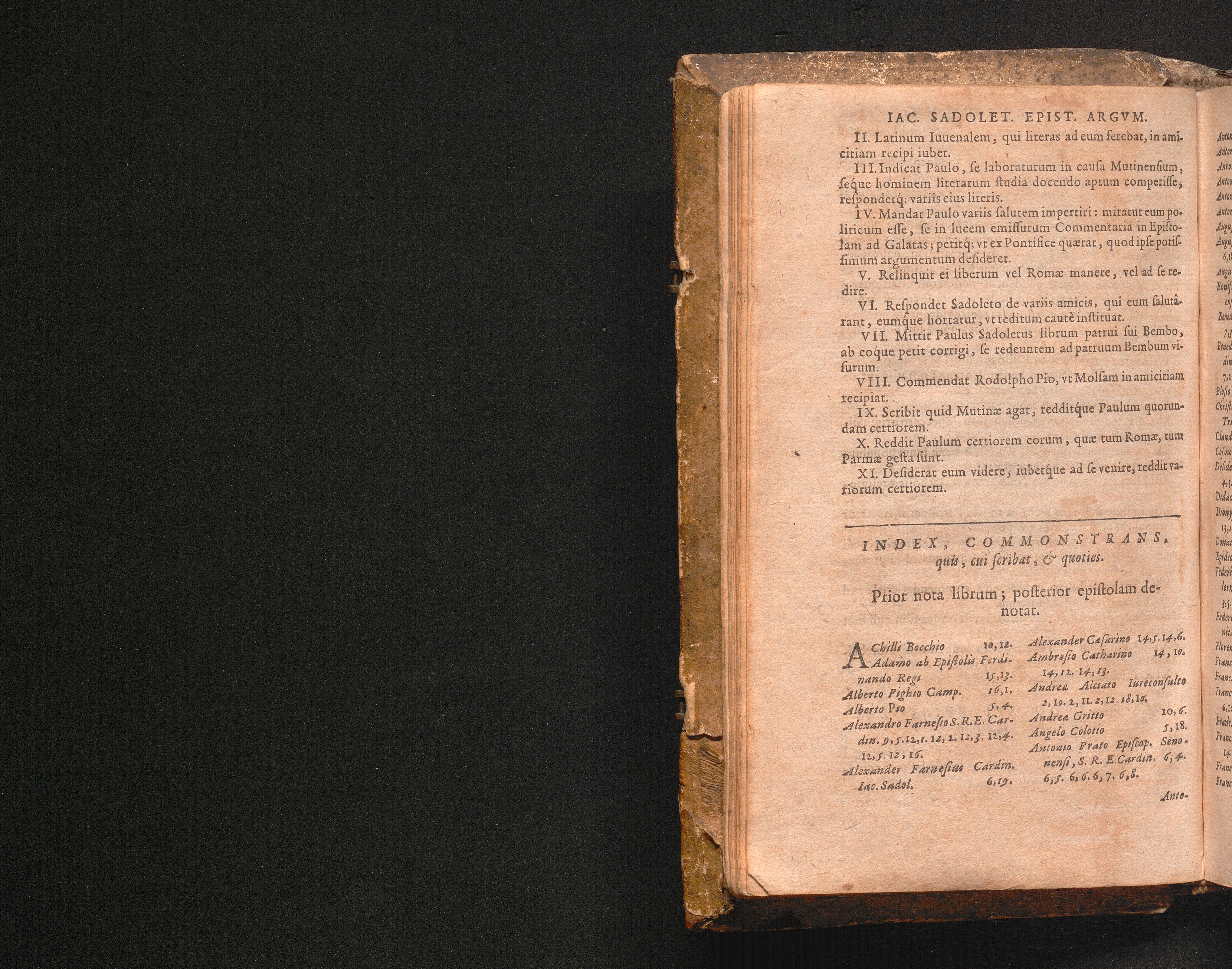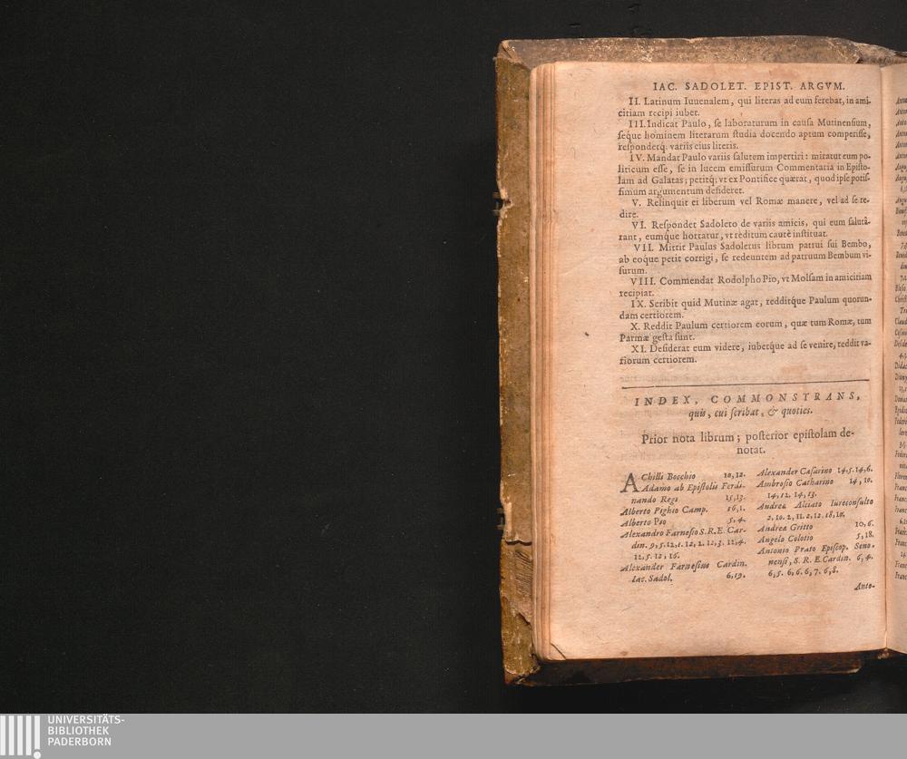 Index, Commonstrans, quis, cui seribat, & quoties.