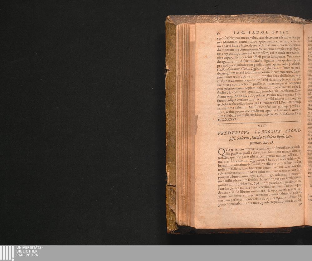 VIII. Fredericvs Fregosivs Archiepisc. Salerni, Iacobo Sadoleto Episc. Carpentor.[...]