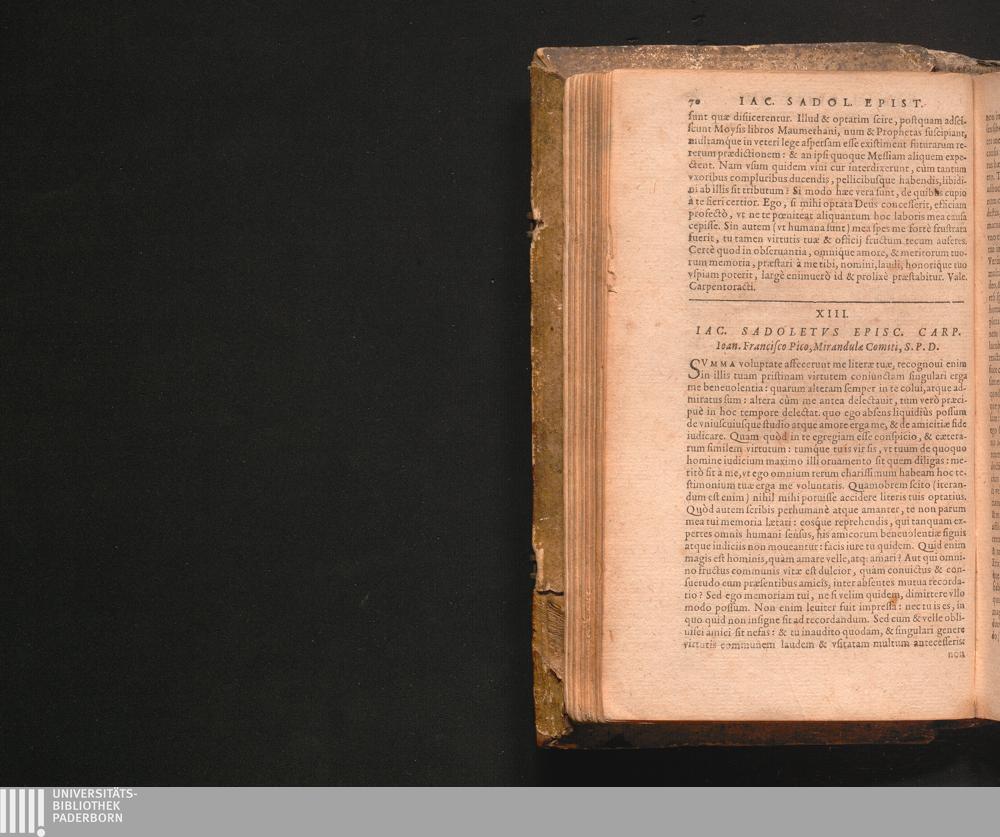 XIII. Iac. Sadoletvs Episc. Carp. Ioan. Francisco Pico, Mirandulæ Comiti, S.P.D.