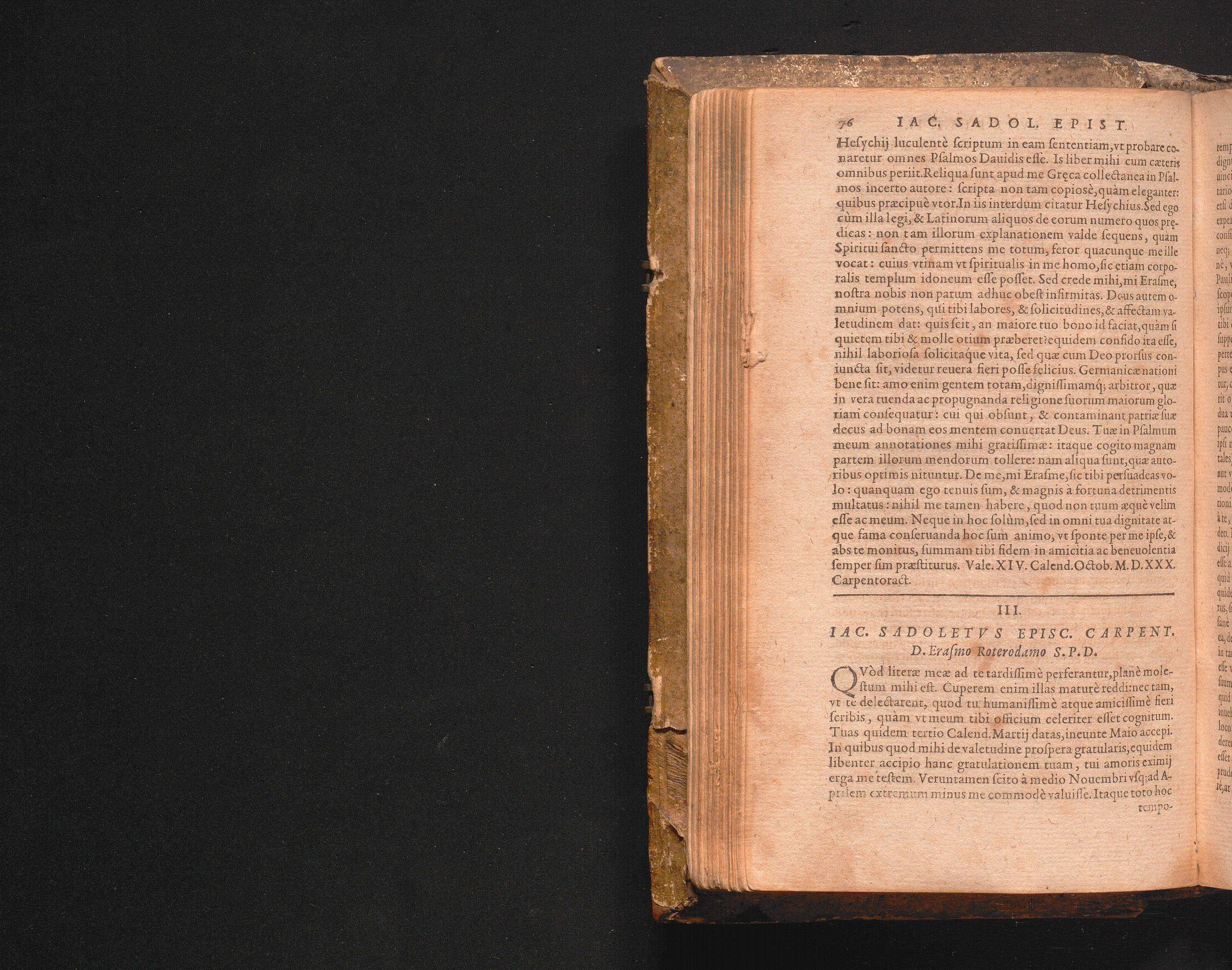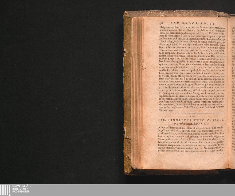 III. Iac. Sadoletvs Episc. Carpent. D. Erasmo Roterodamo S.P.D.