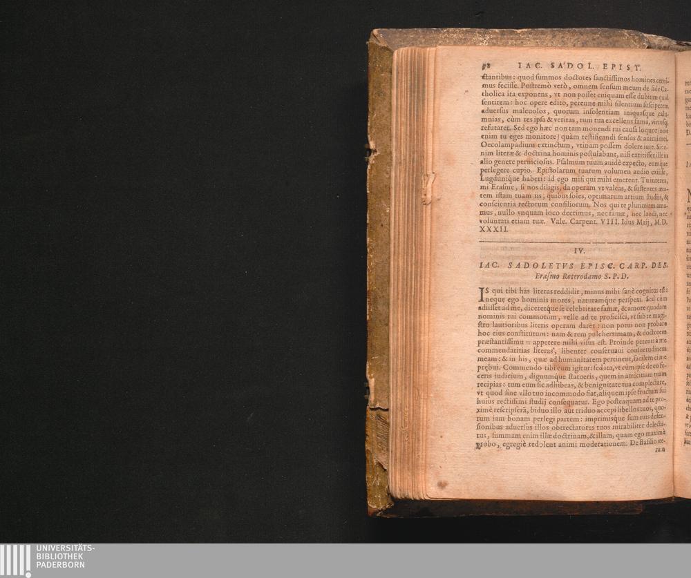 IV. Iac. Sadoletvs Episc. Carp. Des. Erasmo Roterodamo S.P.D.