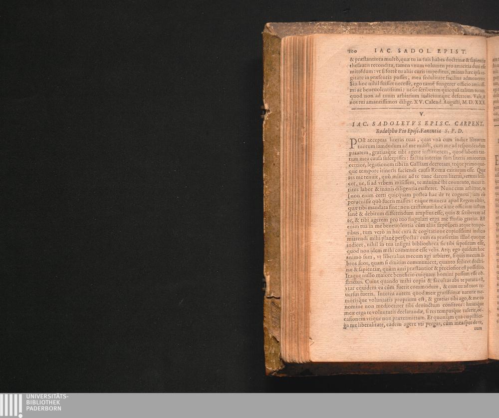 V. Iac. Sadolletvs Episc. Carpent. Rodolpho Pio Episc. Fauentiæ S.P.D.
