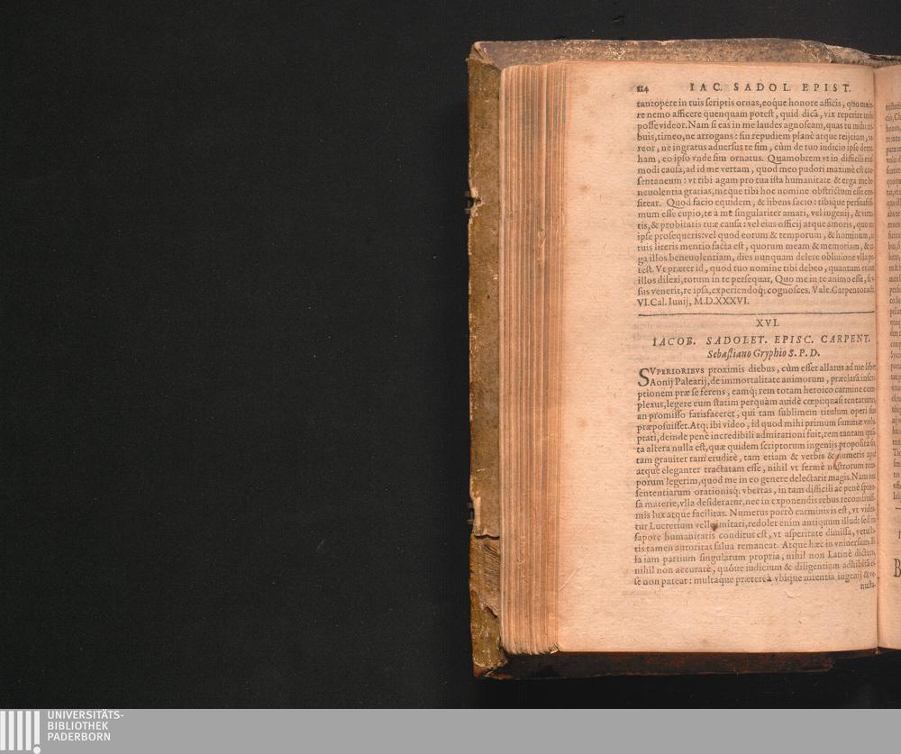 XVI. Iacob. Sadolet. Episc. Carpent. Sebastliano Gryphio S.P.D.