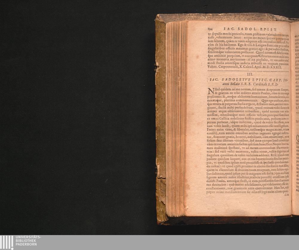 III. Iac. Sadoletvs Episc. Carp. Ioanni Bellaio S.R.E. Cardinali S.P.D.