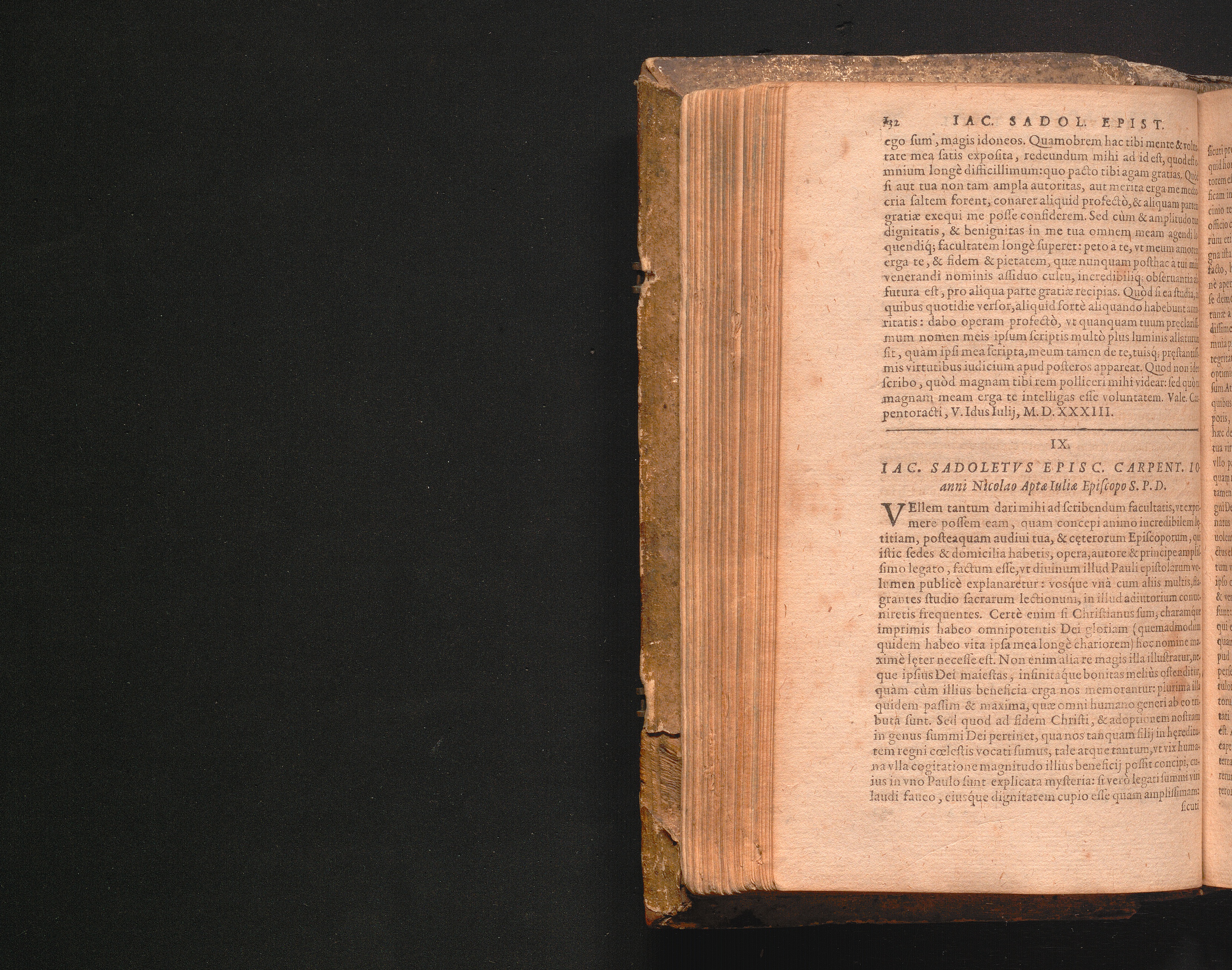 IX. Iac. Sadoletvs Episc. Carpent. Ioanni Nicolao Aptæ Iuliæ Episcopo S.P.D.