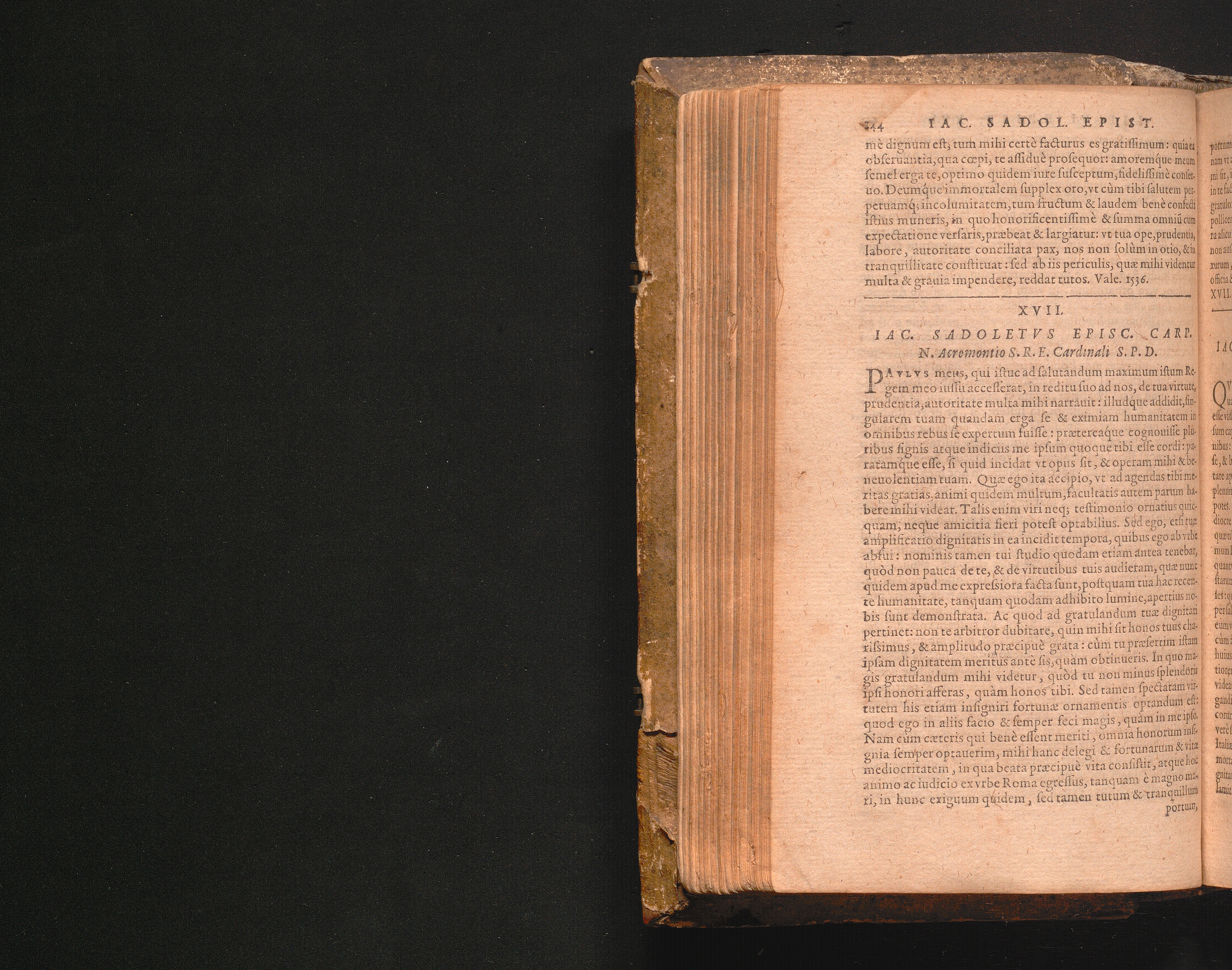 XVII. Iac. Sadoletvs Episc. Carp. N. Acromontio S.R.E. Cardinalo S.P.D.