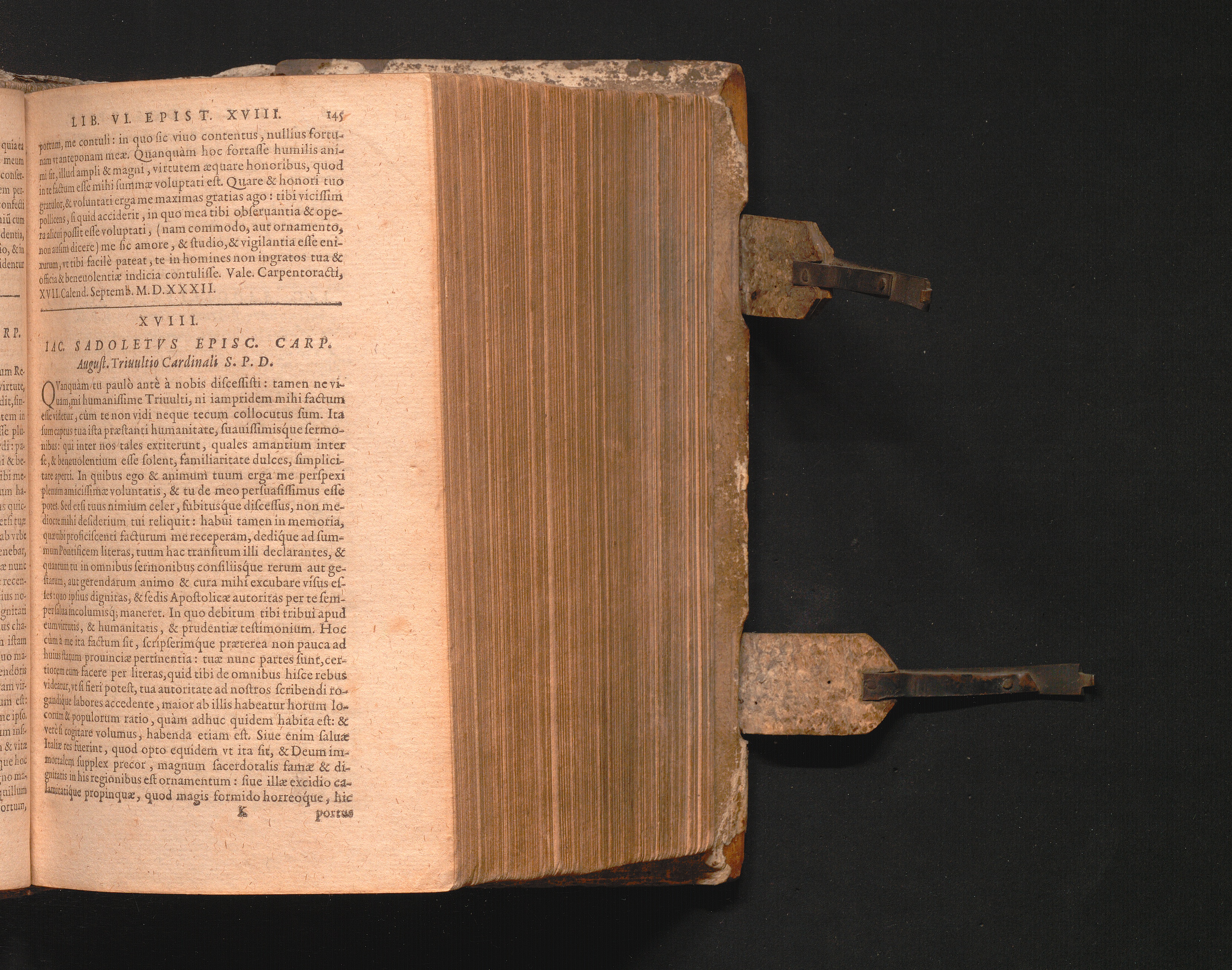 XVIII. Iac. Sadoletvs Episc. Carp. August. Triuultio Cardinali S.P.D.