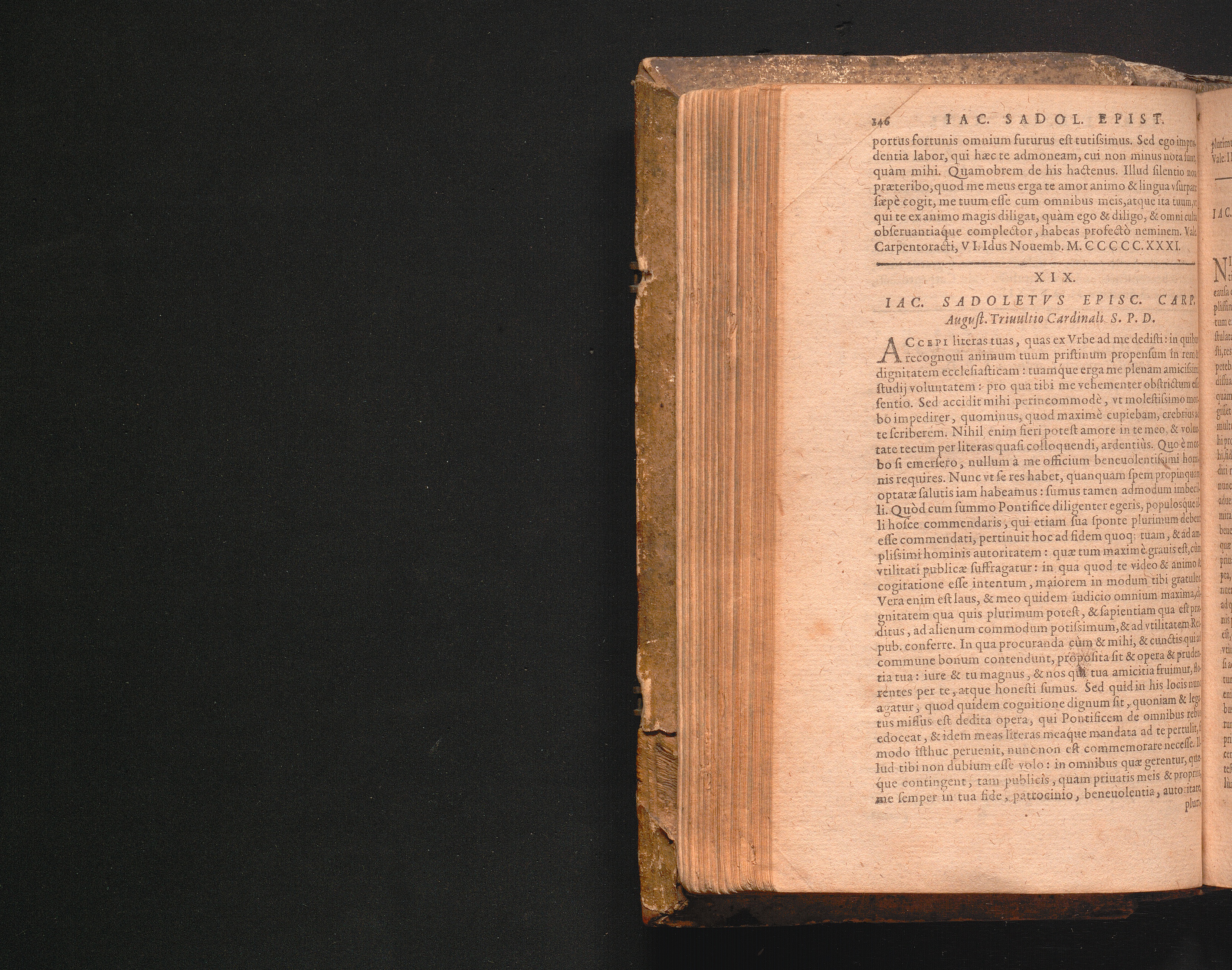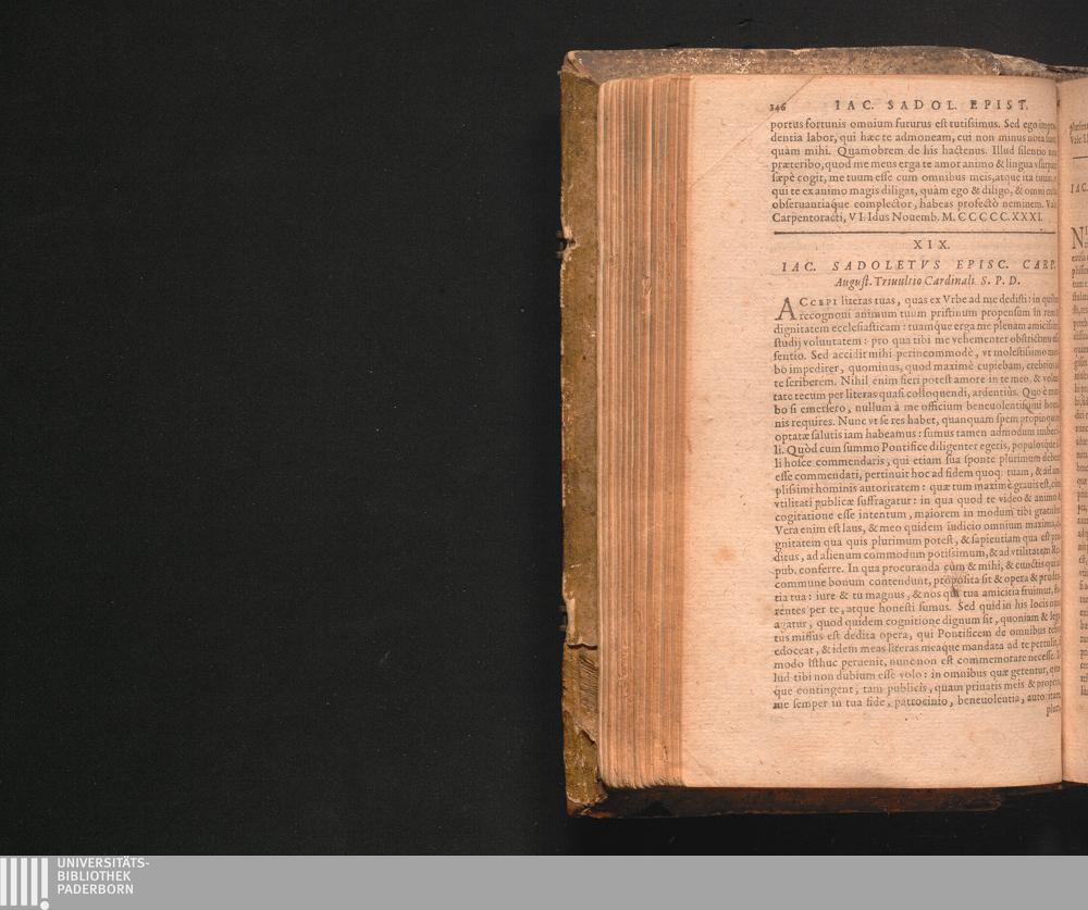 XIX. Iac. Sadoletvs Episc. Carp. August. Triuultio Cardinali S.P.D.