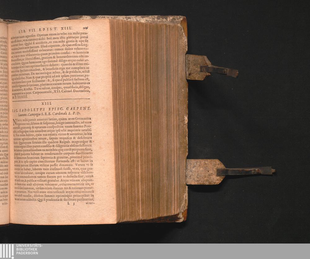 XIII. Iac. Sadoletvs Episc. Carpent. Laurent. Campegio S.R.E. Cardinali S.P.D.