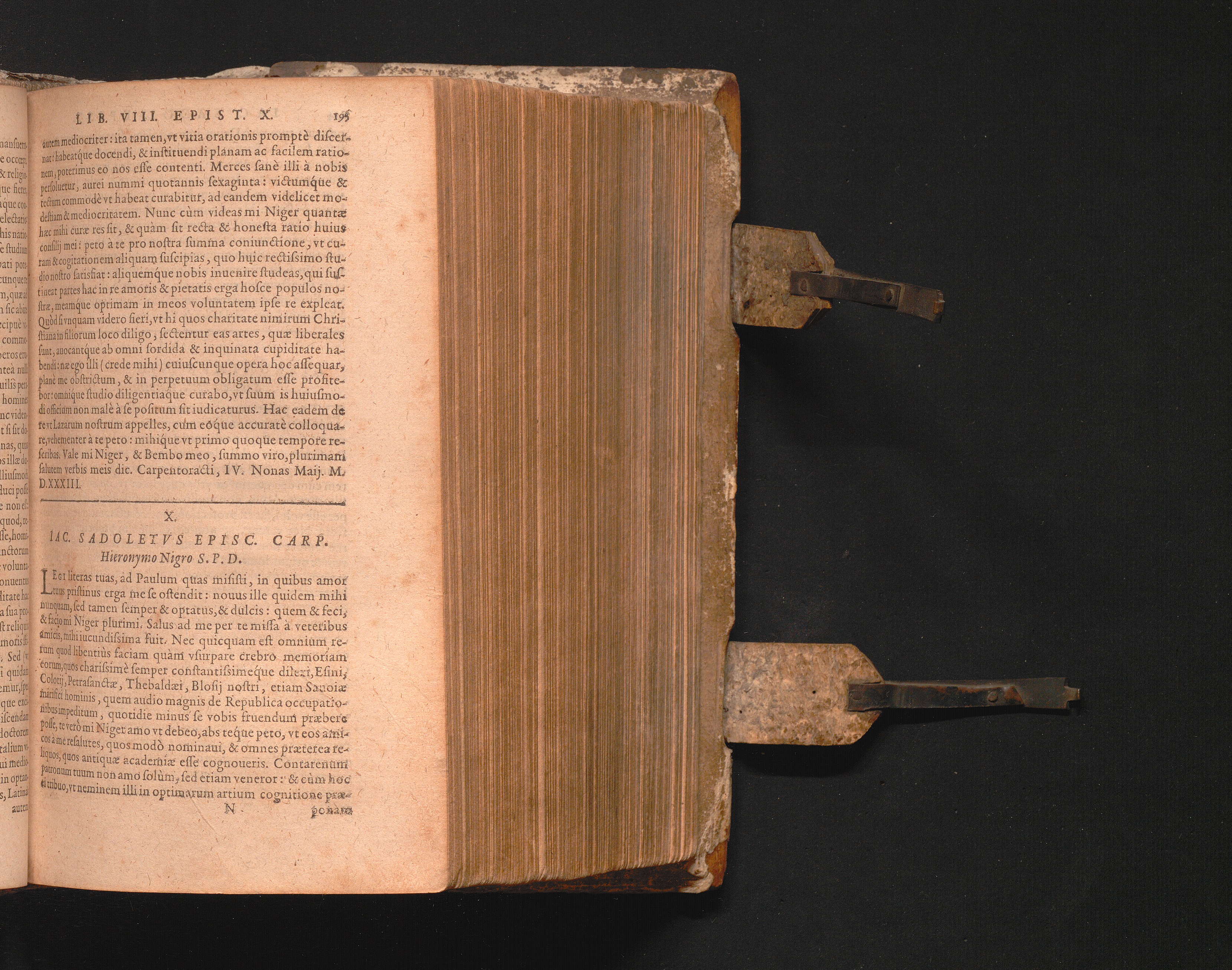 X. Iac. Sadoletvs Episc. Carp. Hieronymo Nigro S.P.D.