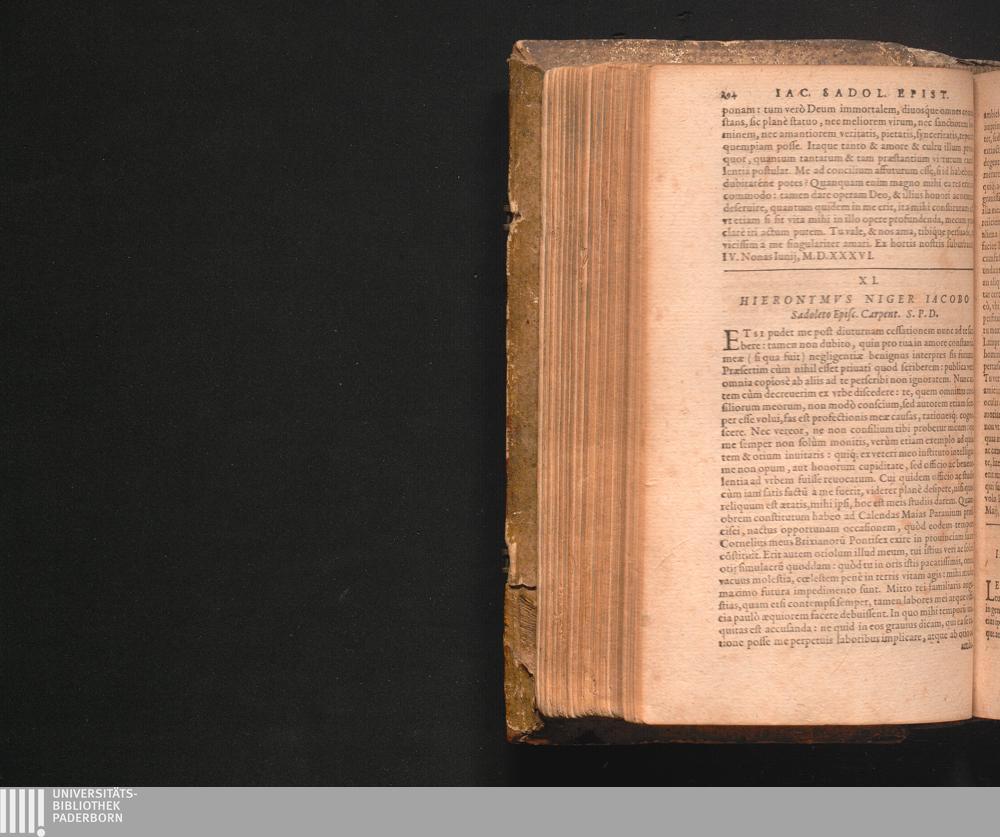 XI. Hieronymvs Niger Iacobo Sadolero Episc. Carpent. S.P.D.