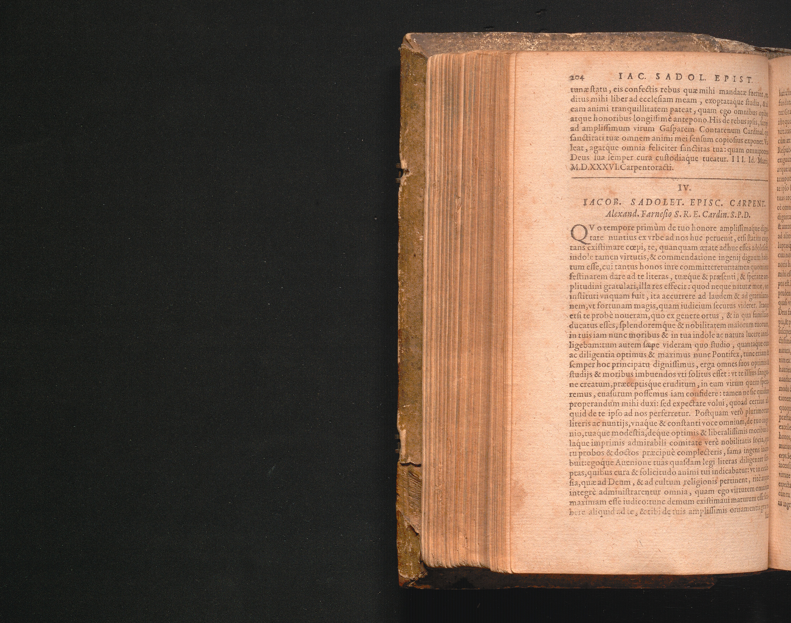IV. Iacob. Sadolet. Episc. Carpent. Alexand. Farnesio S.R.E. Cardin. S.P.D.