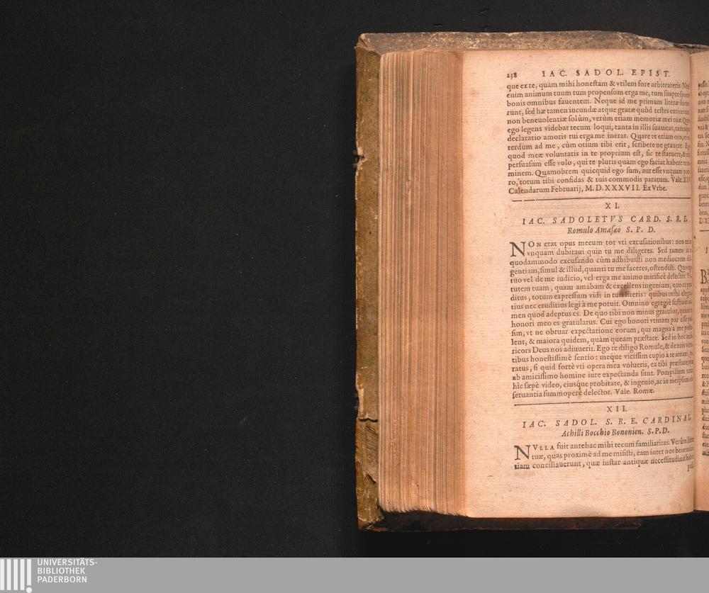 XII. Iac. Sadol. S.R.E. Cardinal. Achilli Bocchio Bononien. S.P.D.