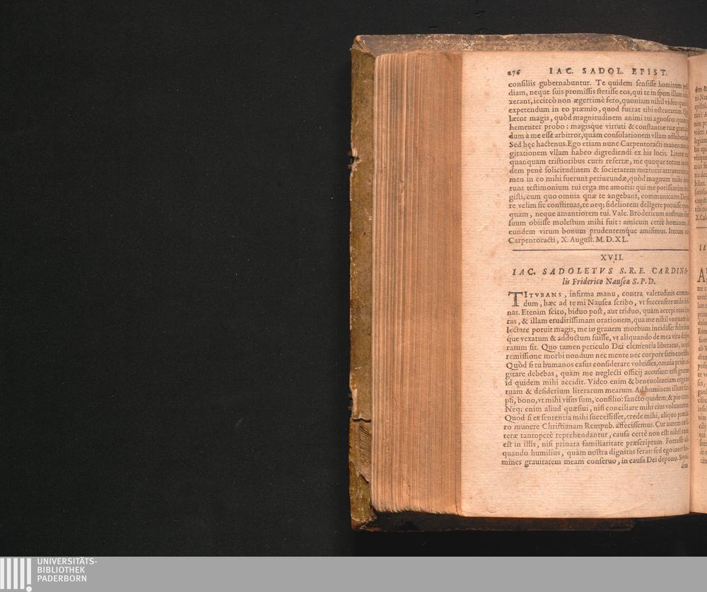 XVII. Iac. Sadoletvs S.R.E. Cardinalis Friderico Nauseæ S.P.D.