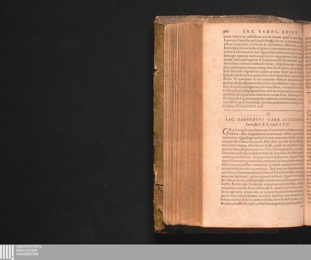 II. Iac. Sadoletvs Card. Alexandro Farnesio S.R.E. Card. S.P.D.