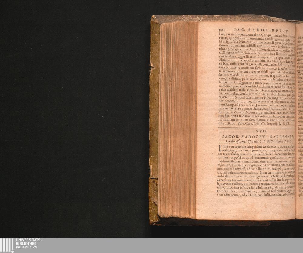 XVII. Iacob. Sadolet. Cardinalis Guido Ascanio Sfortia S.R.E. Cardinali S.P.D.