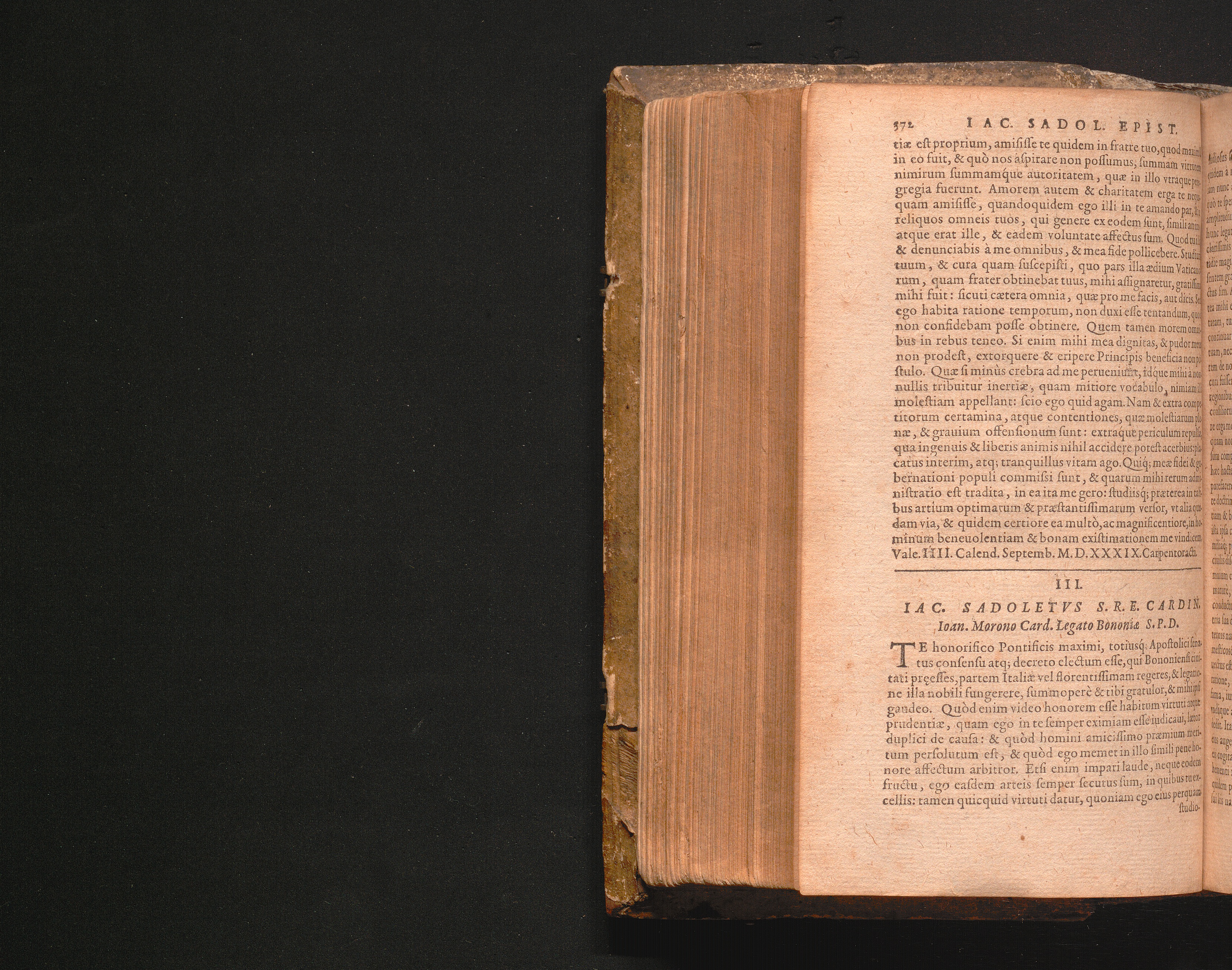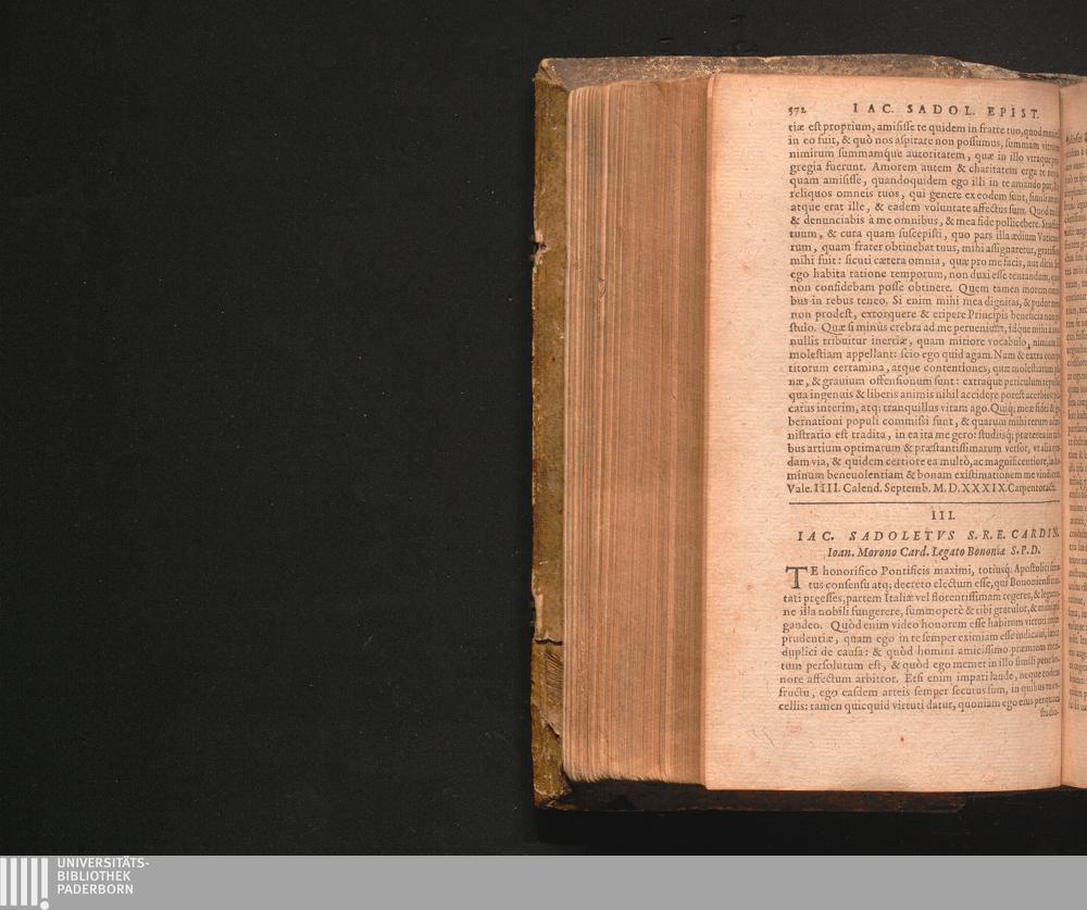 III. Iac. Sadoletvs S.R.E. Cardin. Ioan. Morono Card. Legato Bononiæ S.P.D.