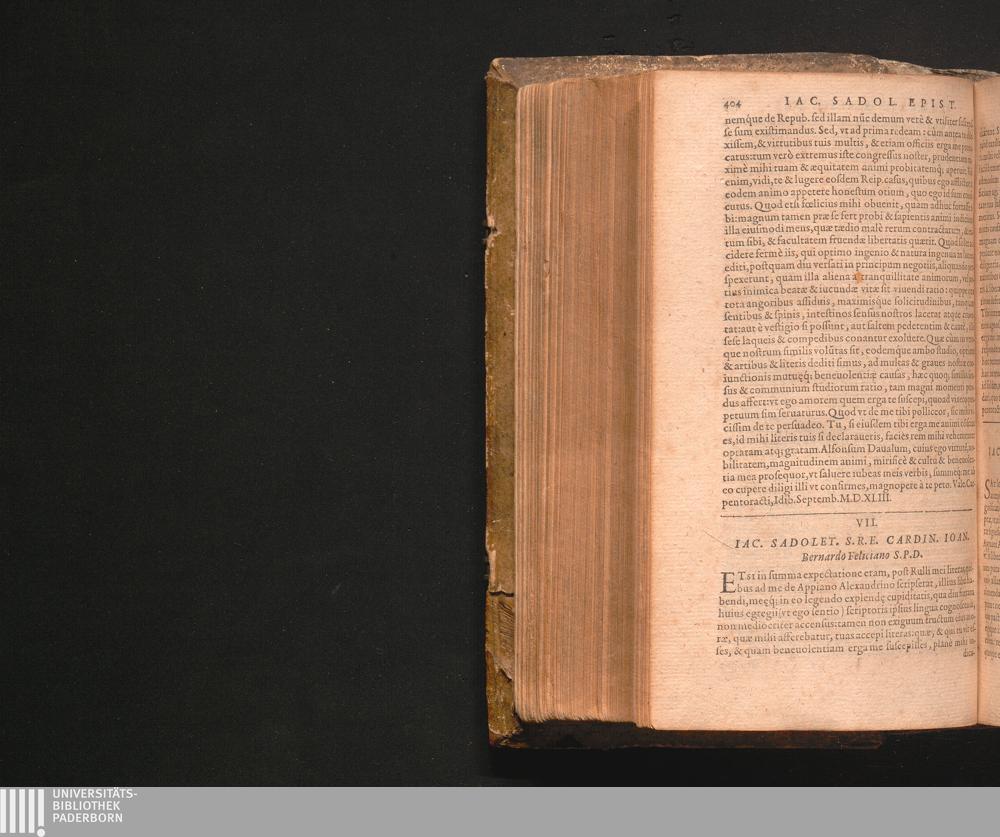 VII. Iac. Sadolet. S.R.E. Cardin. Ioan. Bernardo Feliciano S.P.D.