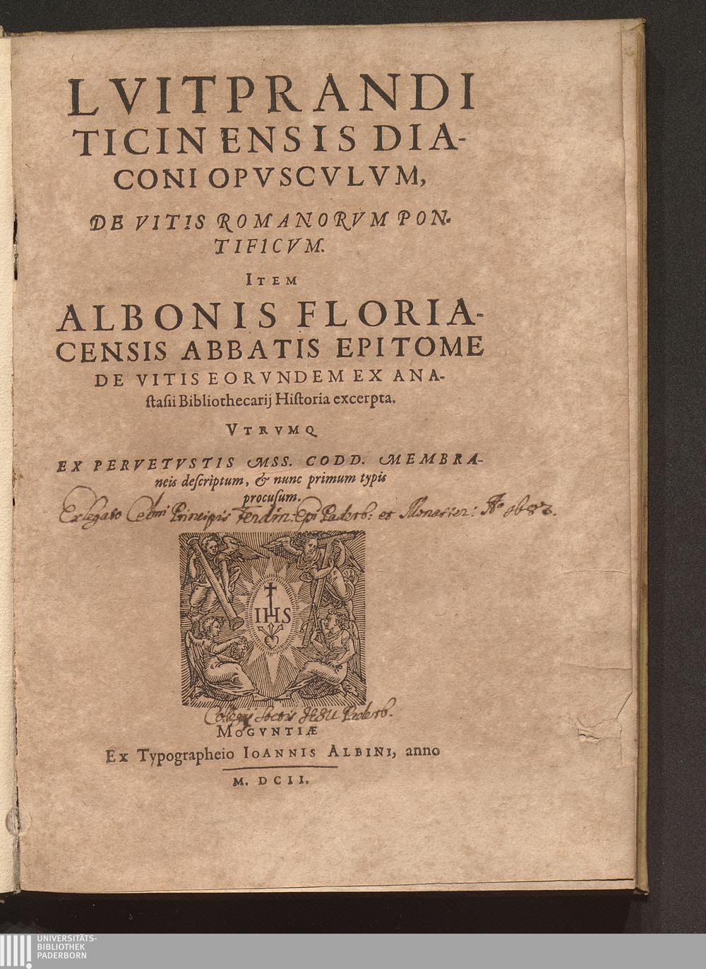 Lvitprandi Ticinensis Diaconi Opvscvlvm, De Vitis Romanorvm Pontificvm