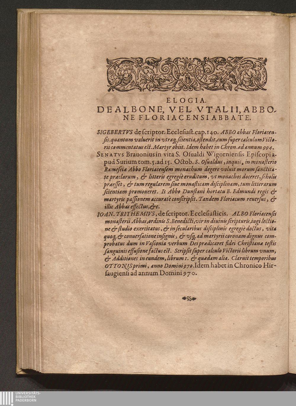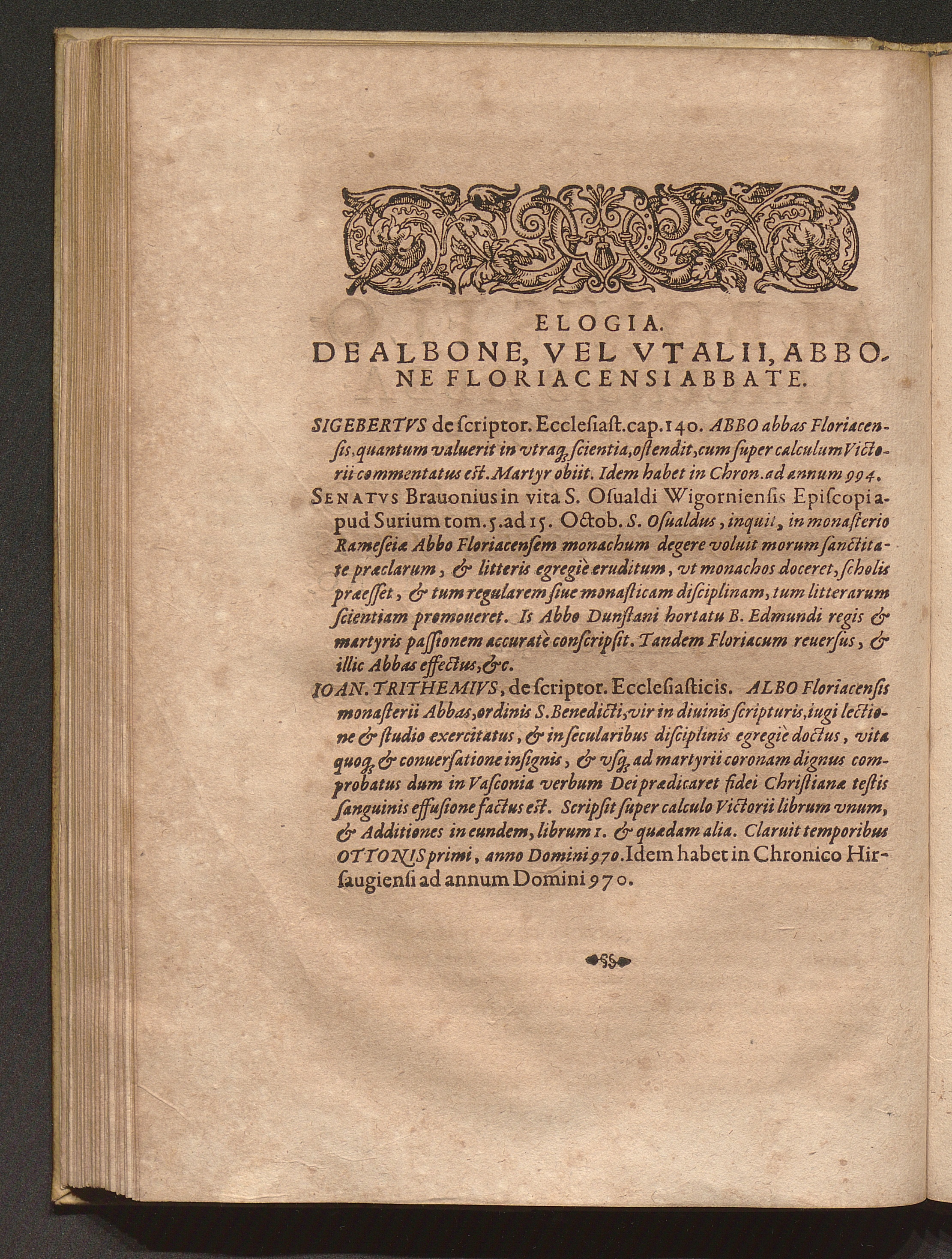 Elogia. De Albone, Vel Vtalii, Abbone Floriacensi Abbate.