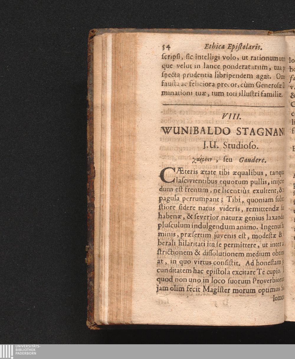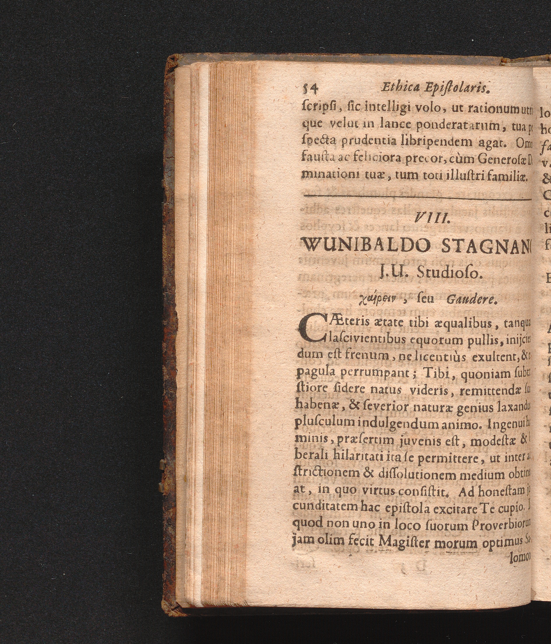 VIII. Wunibaldo Stagnano J. U. Studioso. Χαiϱϵιν, seu Gaudere.