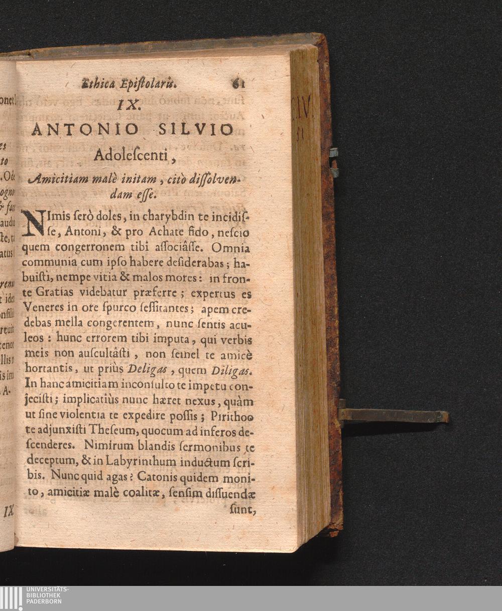 IX. Antonio Sylvio adolescenti, Amicitiam malè initam citò dissolvendam.