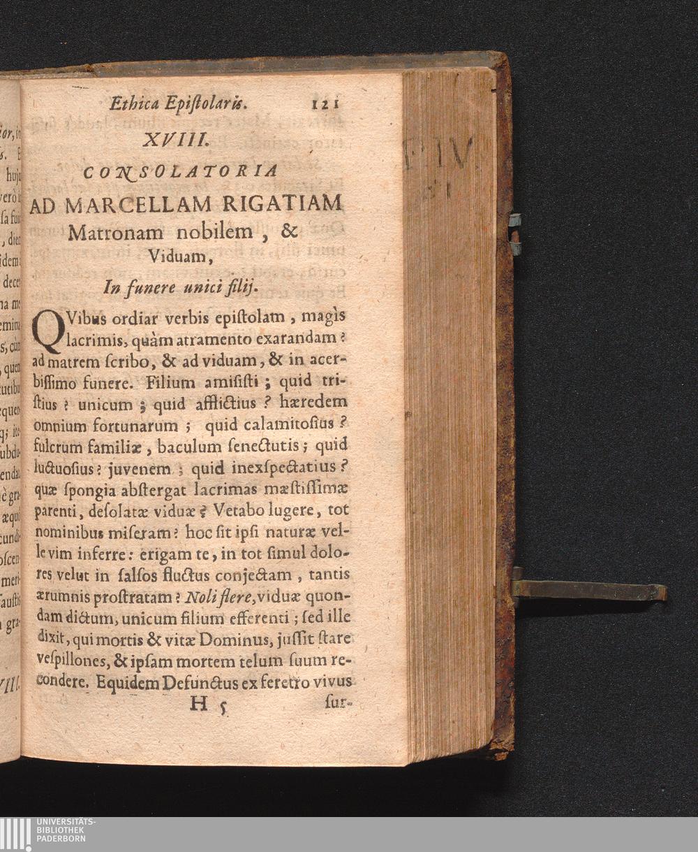 XVIII. Ad Marcellam Rigatiam, Matronam nobilem, & Viduam, in funere unici filij,[...]