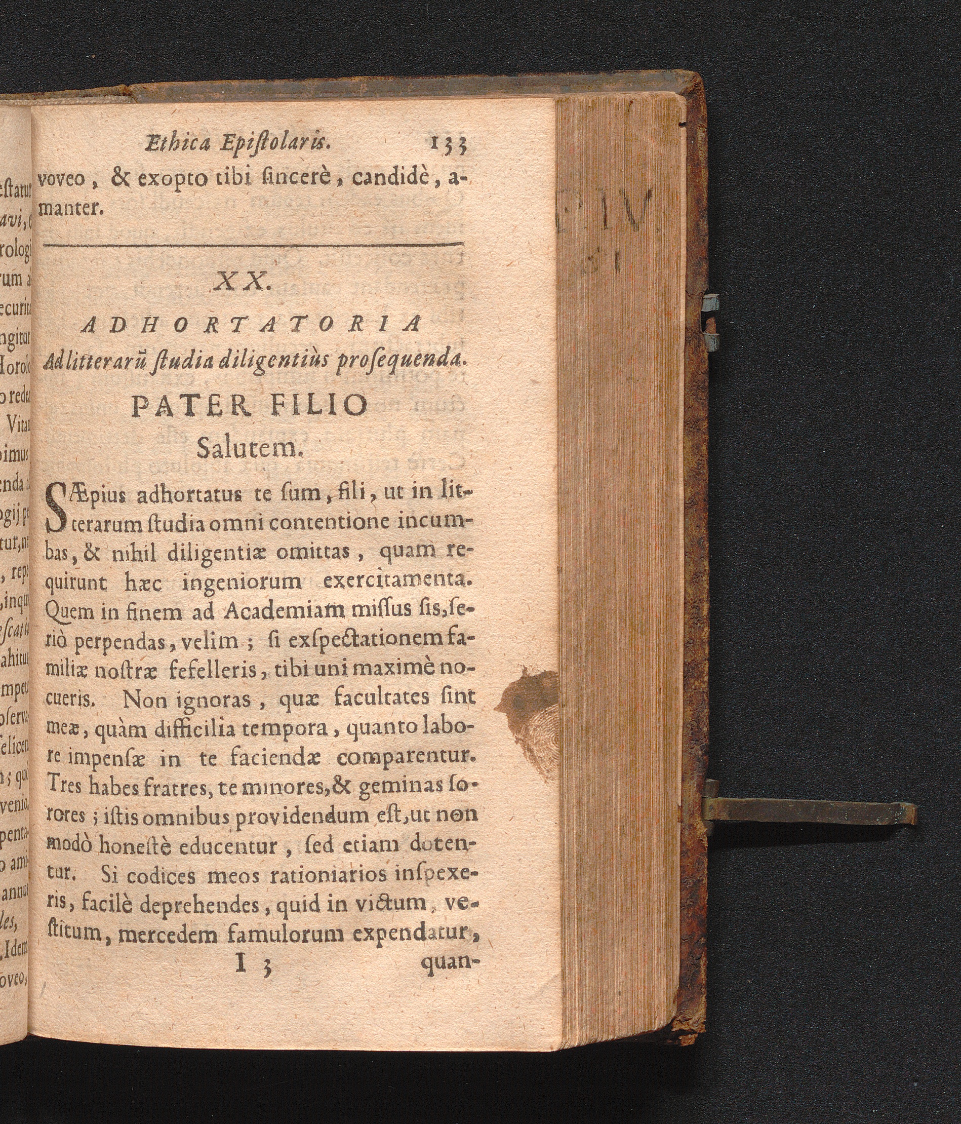 XX. Parens adhortatur filium ad litterarum studia diligentiùs sequenda.