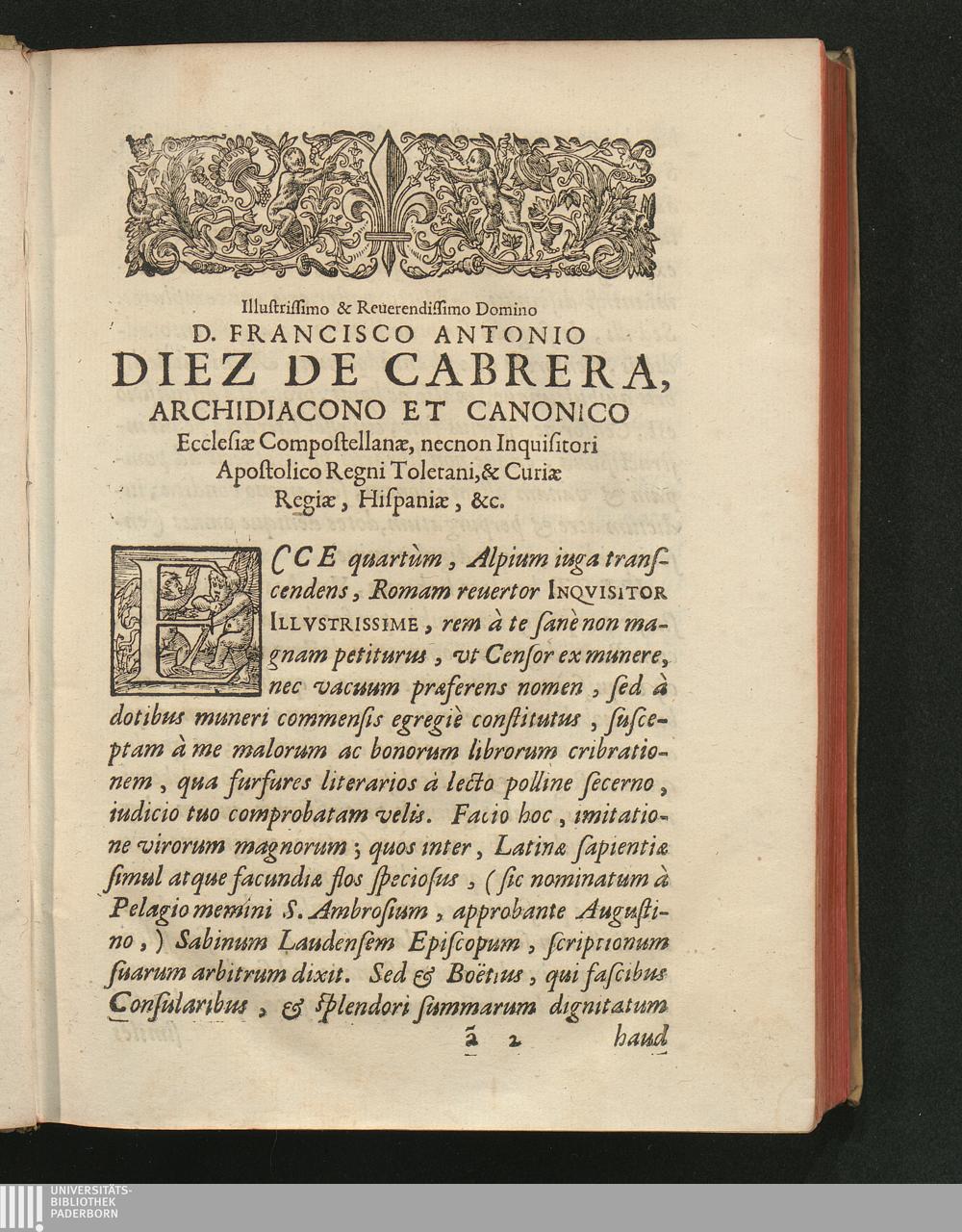 Illustrissimo & Reuerendissimo Domino D. Francisco Antonio Diez De Cabrera, ...