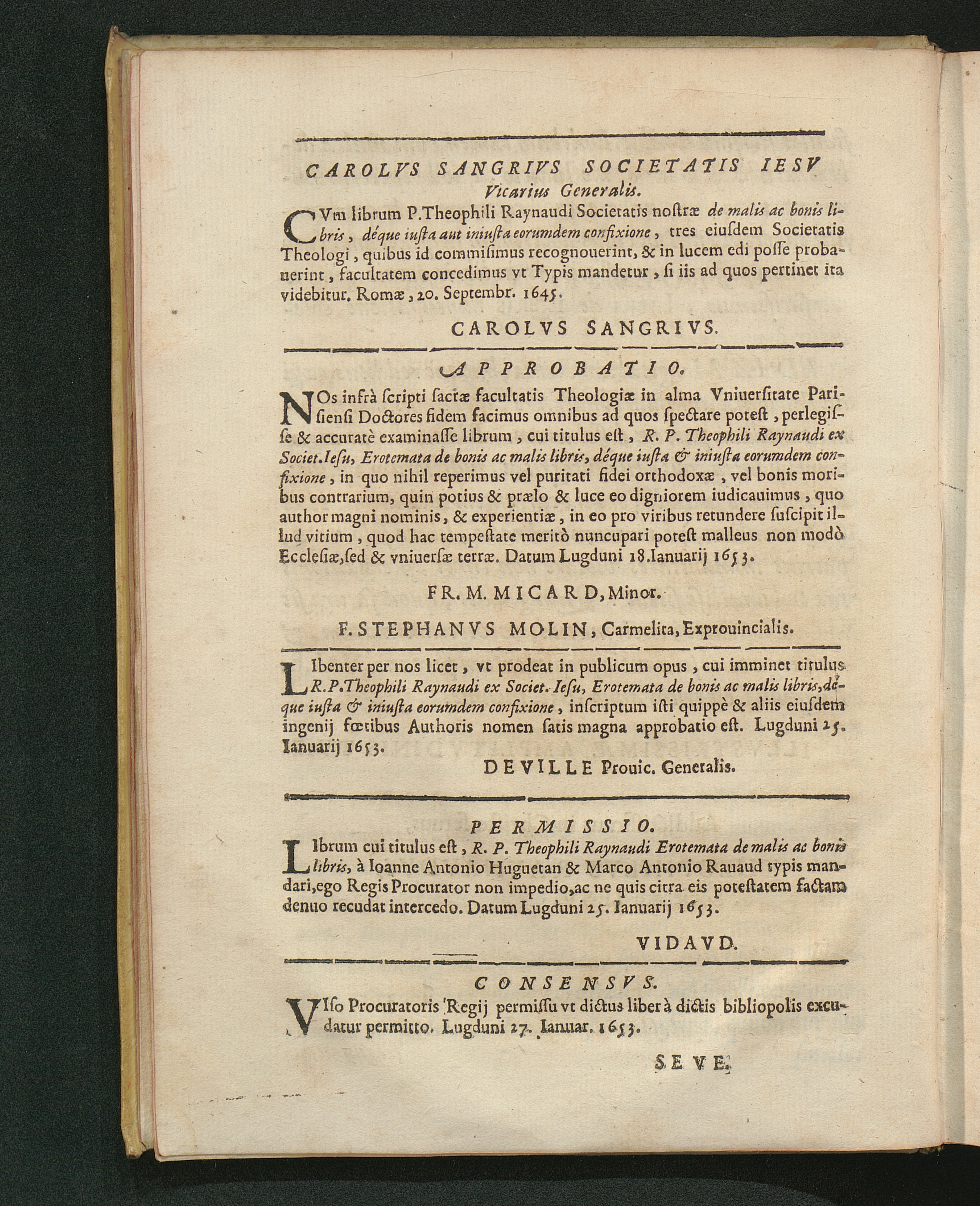 R. P. Theophili Raynavdi, Ex Soc. Iesv. Erotemata De Malis Ac Bonis Libris, Deqve Ivsta Avt Inivsta, eorumdem confixione : Cvm Indicibvs Necessariis