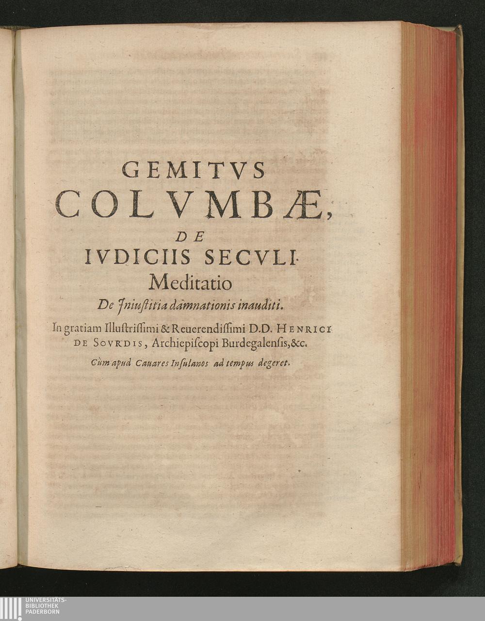 Gemitvs Colvmbae, De Ivdiciis Secvli. Meditatio De Jniustitia damnationis inaudi[...]
