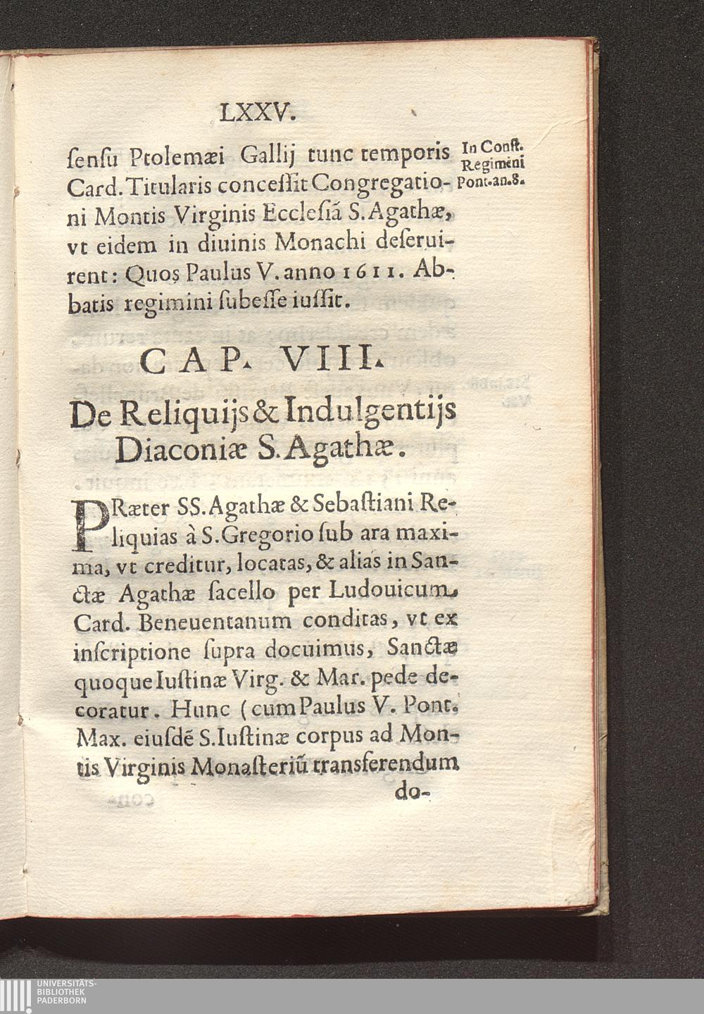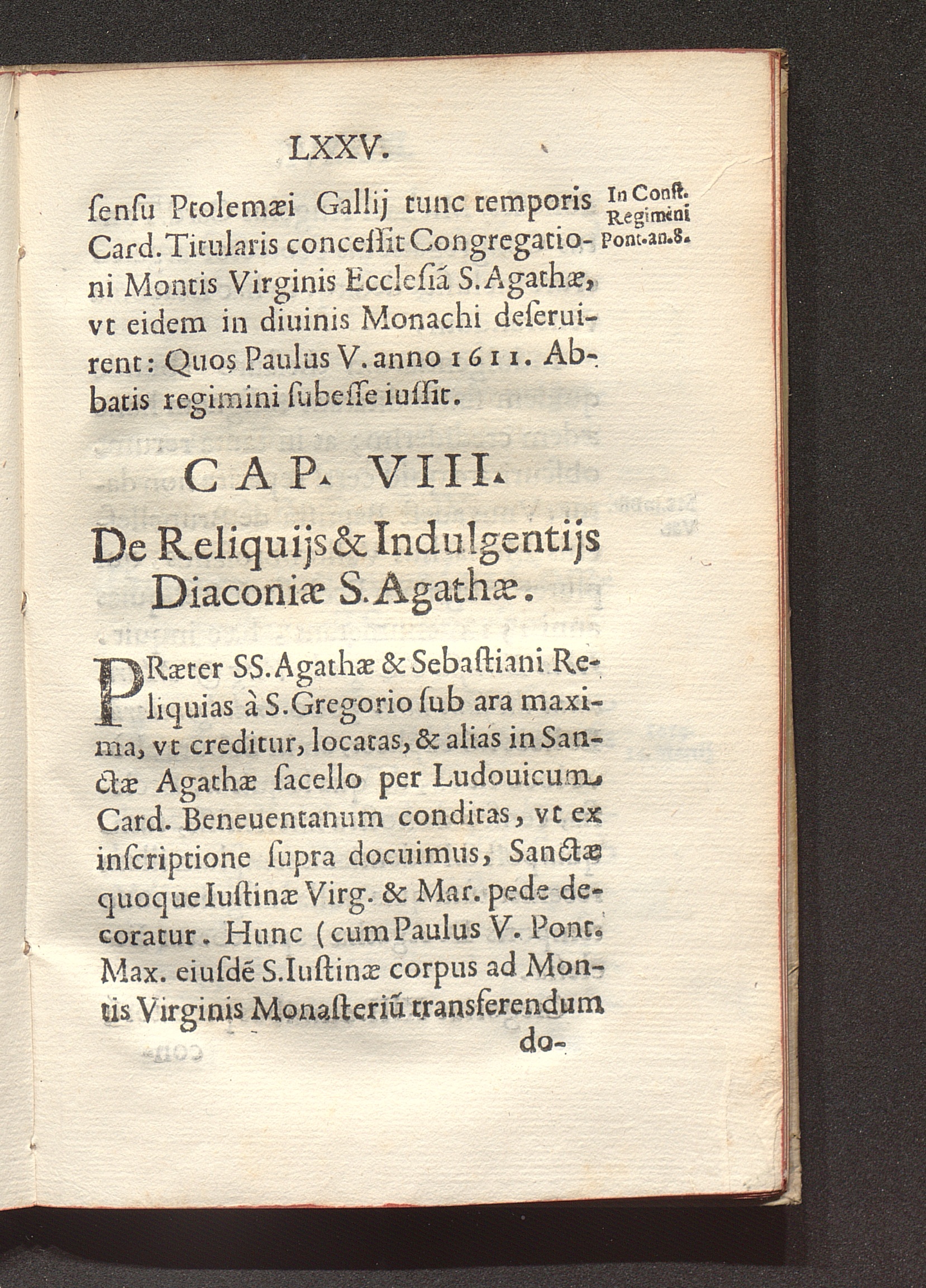 Cap. VIII. De Reliquijs & Indulgentijs Diaconiae S. Agathae.