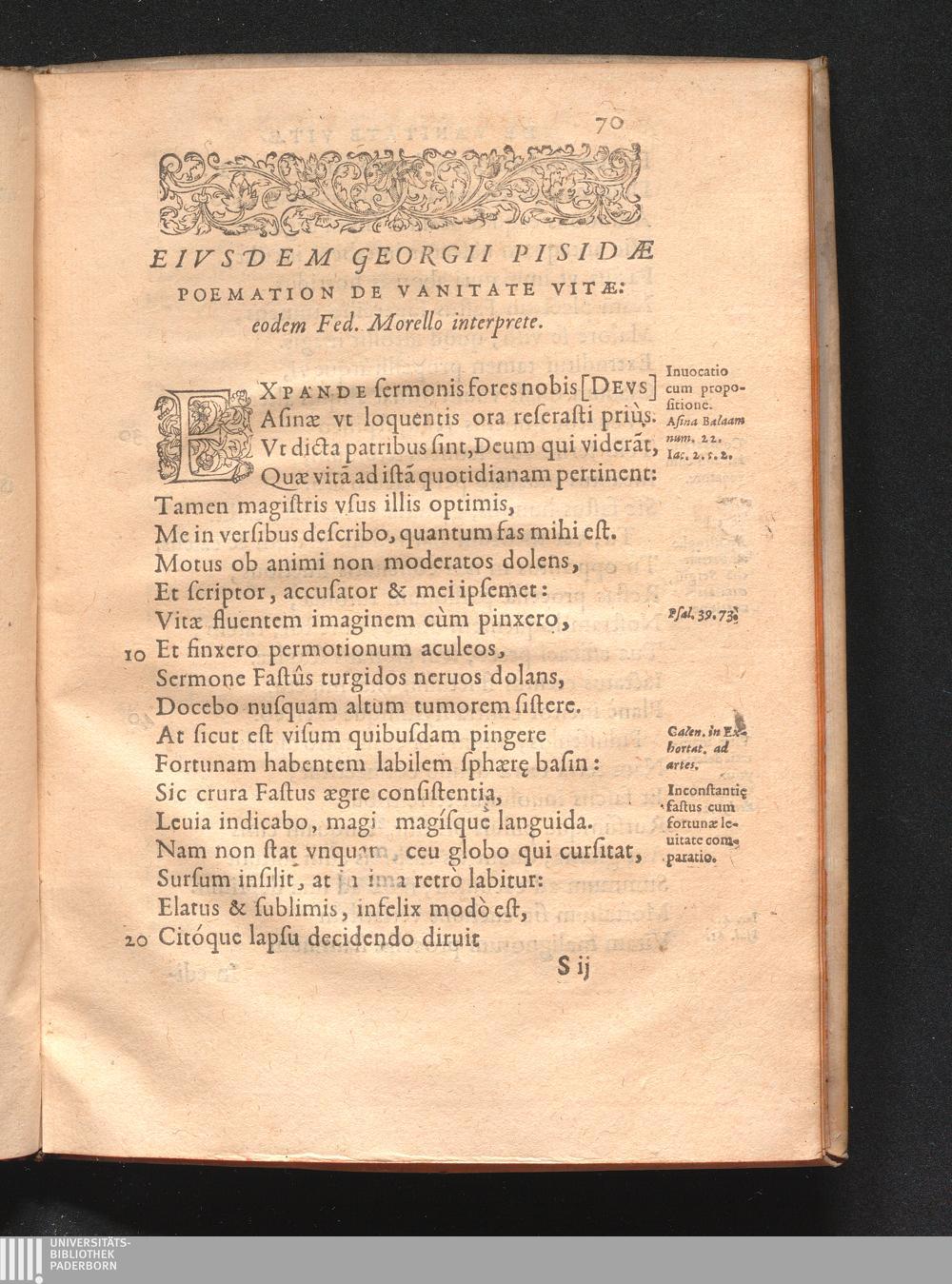 Hexaēmeron Hē Toi, Kosmourgia, Georgiou tou Pisidou diakonou ... / Omnia nunc primùm Græcè in lucem edita, & Latinis versibus eiusdem generis expressa, per Fed. Morellum Federici F. cum fragmentis ex Suida & aliis