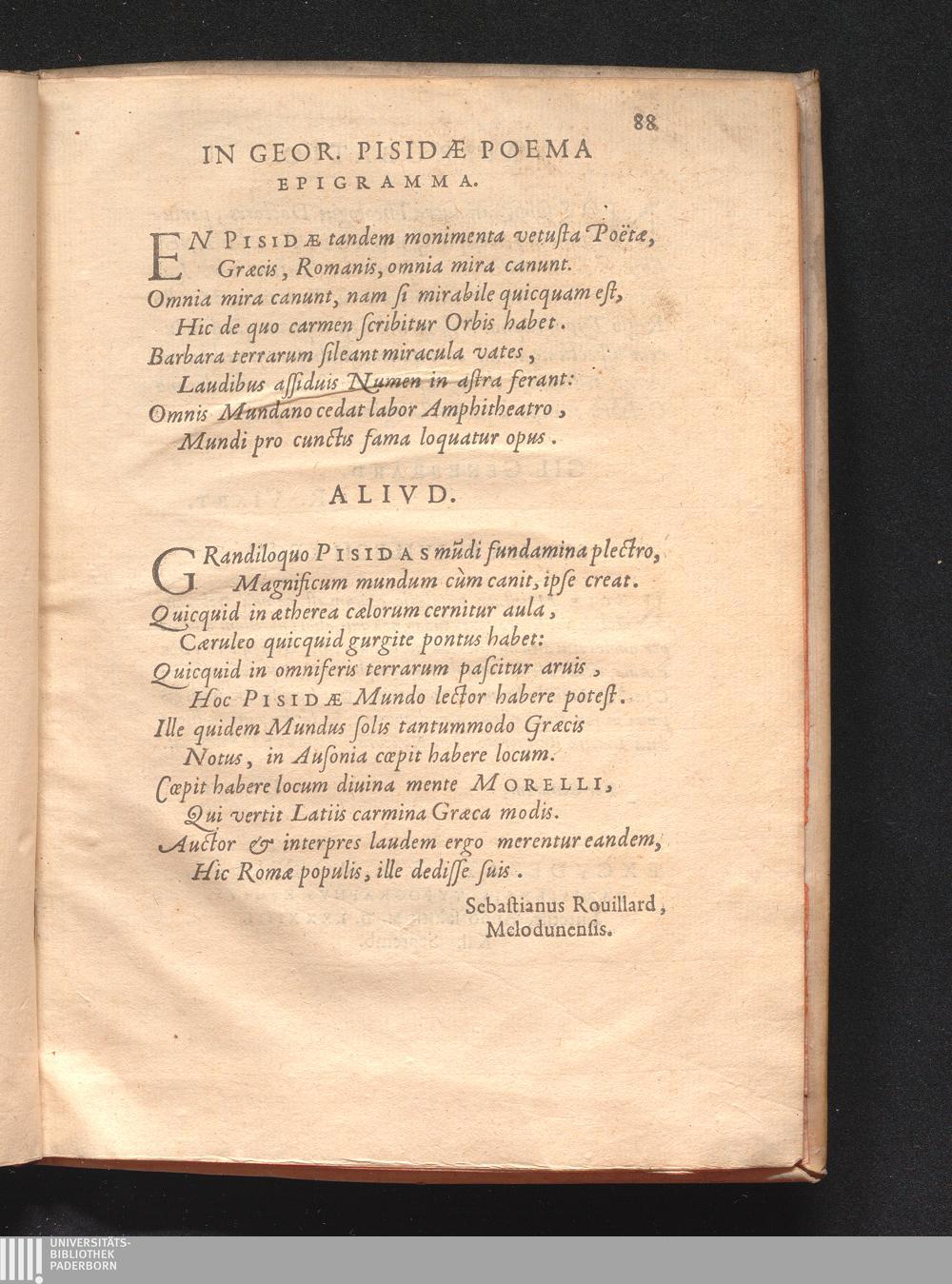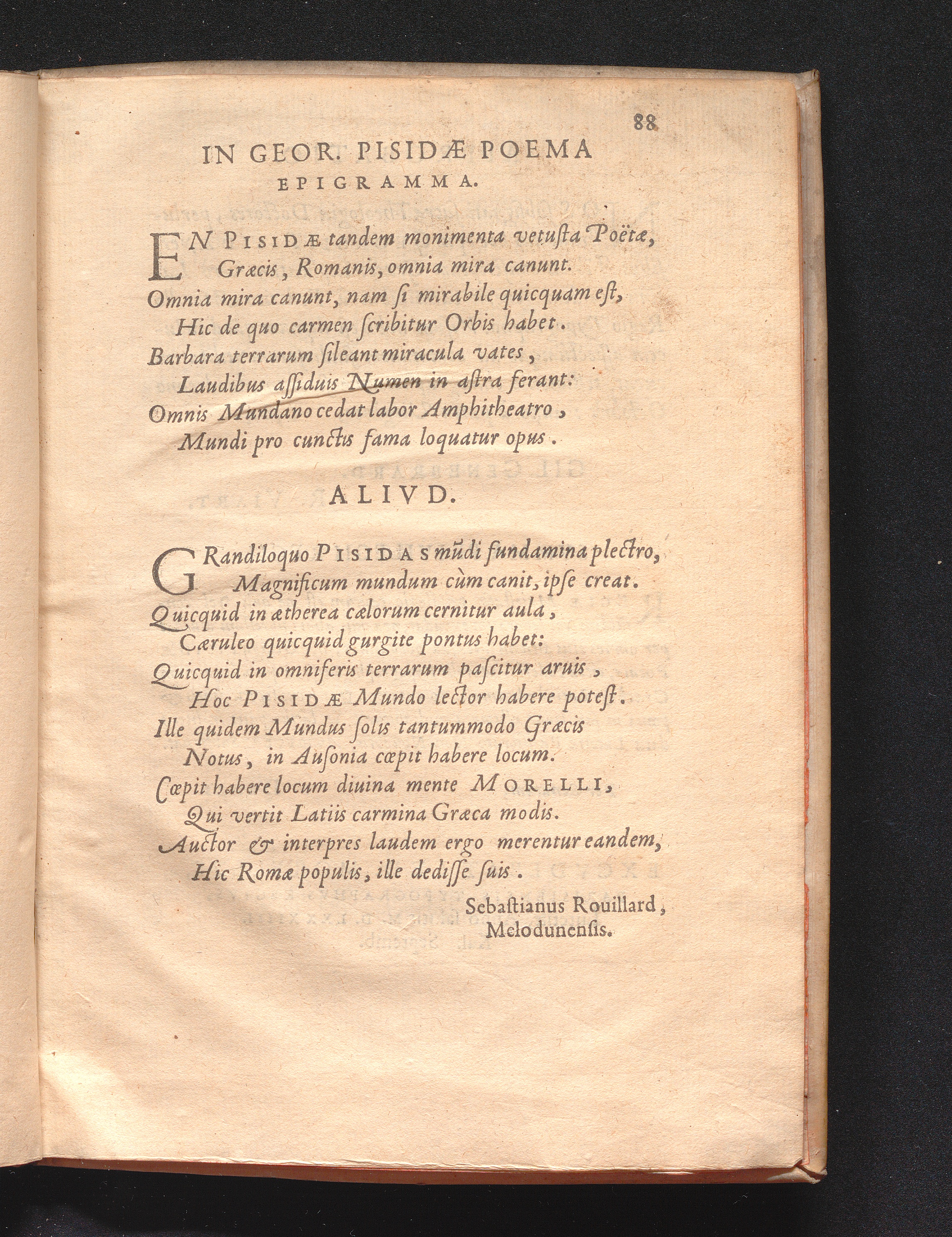Hexaēmeron Hē Toi, Kosmourgia, Georgiou tou Pisidou diakonou ... / Omnia nunc primùm Græcè in lucem edita, & Latinis versibus eiusdem generis expressa, per Fed. Morellum Federici F. cum fragmentis ex Suida & aliis