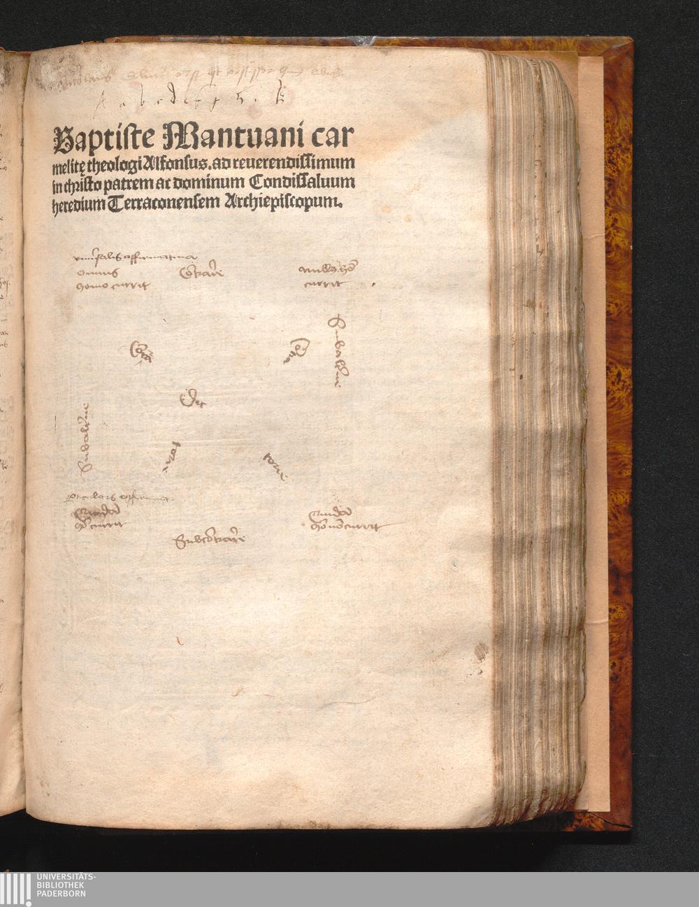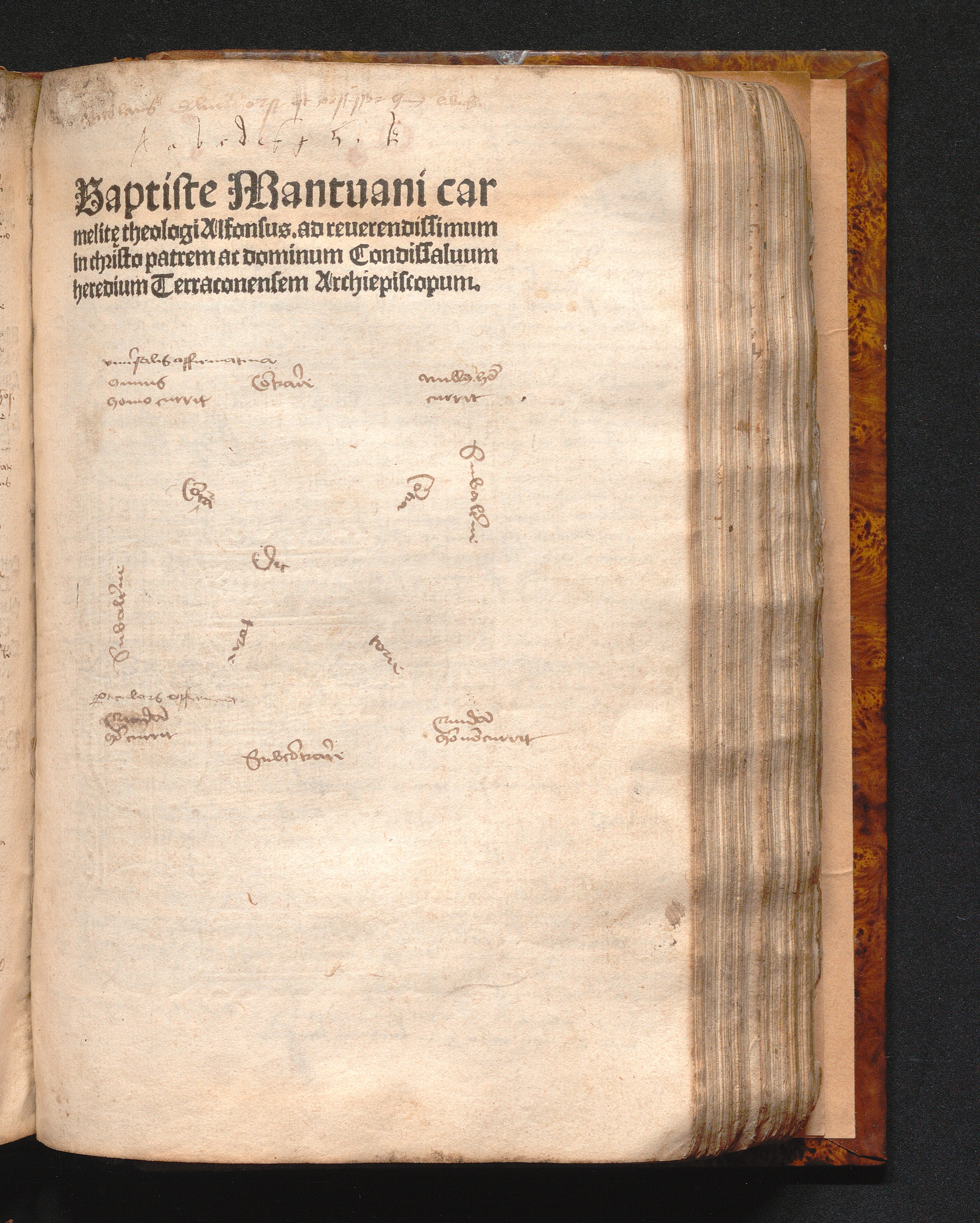 Baptiste Mantuani car||melite theologi Alfonsus : ad reuerendissimum in christo patrem ac dominum Condissaluum heredium Terraconensem Archiepiscopum