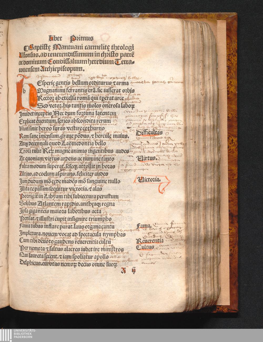 Liber Primus Baptist[ae] Mantuani carmelit[ae] theologi Alfonsus. ad reuerendissimum[...]