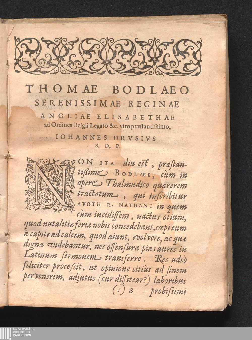 Thomae Bodlaeo Serenissimae Reginae Angliae Elisabethae ad Ordines Belgii Legato &c. viro præstantissimo, Iohannes Drvsivs S. P. D.