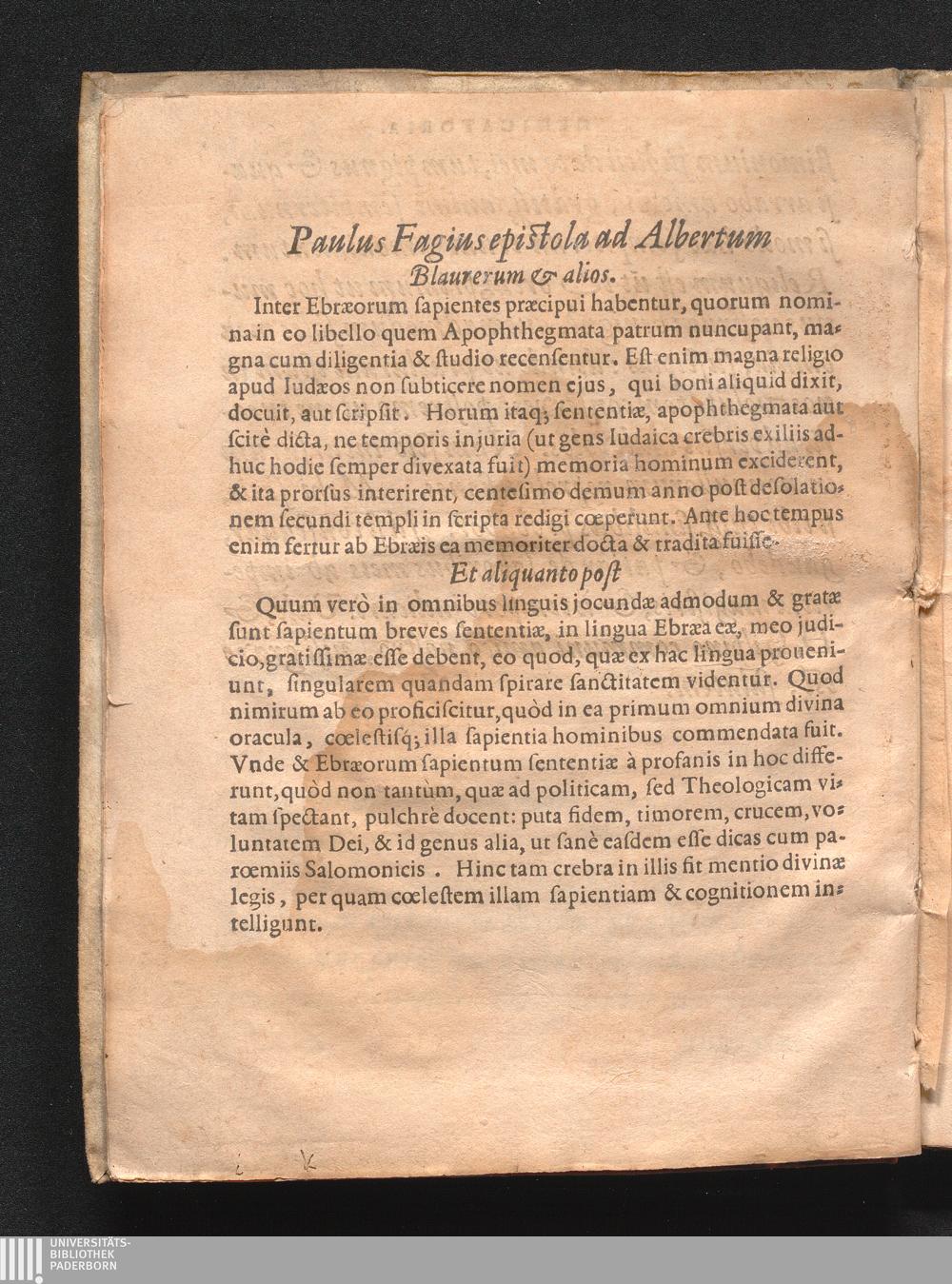 Paulus Fagius epistola ad Albertum