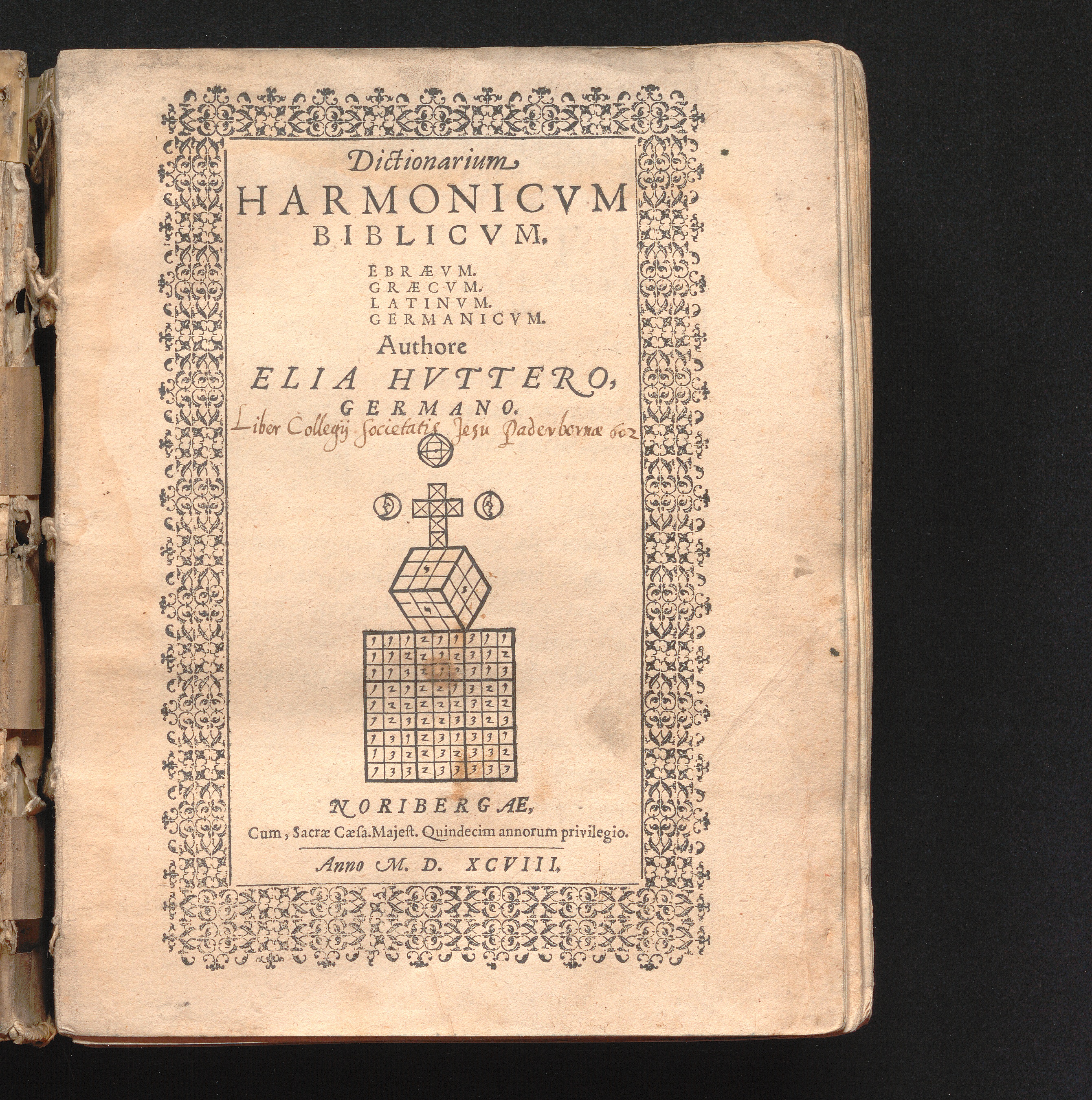 Dictionarium || HARMONICVM || BIBLICVM.|| EBRAEVM.|| GRAECVM.|| LATINVM.|| GERMANICVM.|| / Authore || ELIA HVTTEHO.|| GERMANO.||