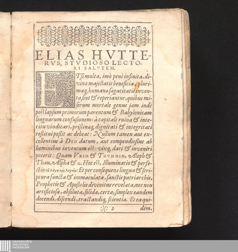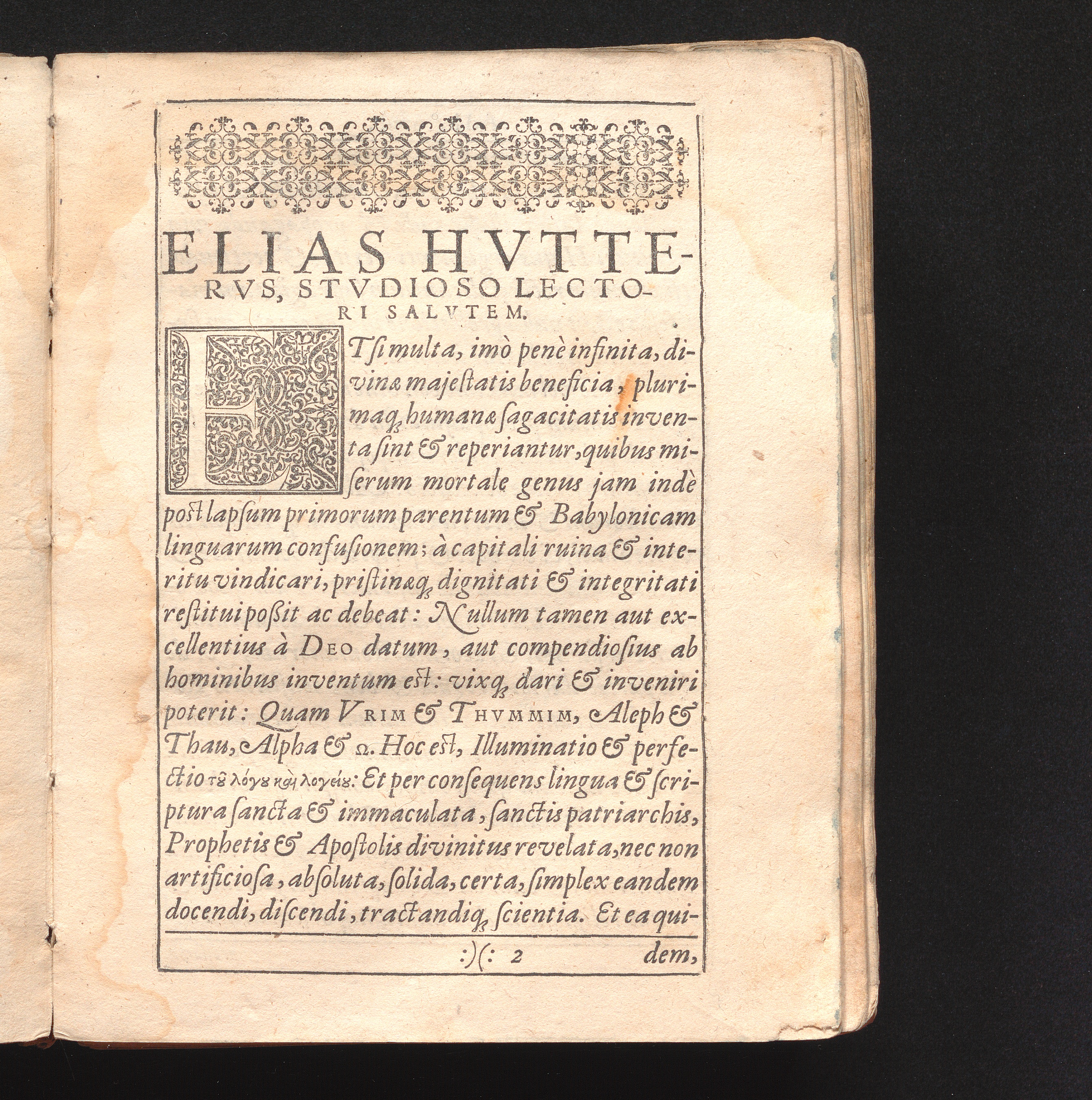 Elias Hvttervs, Stvdioso Lectori Salvtem.