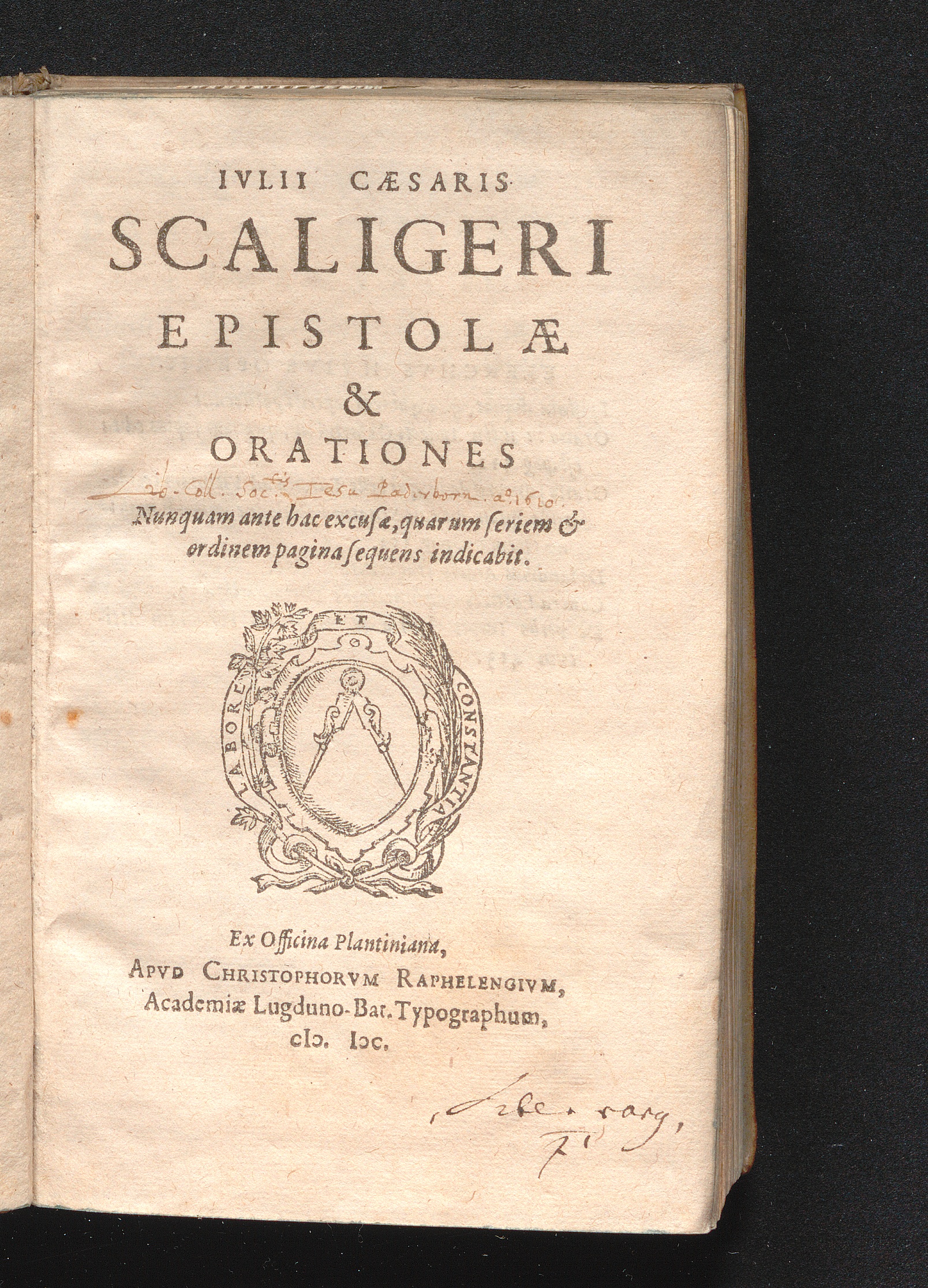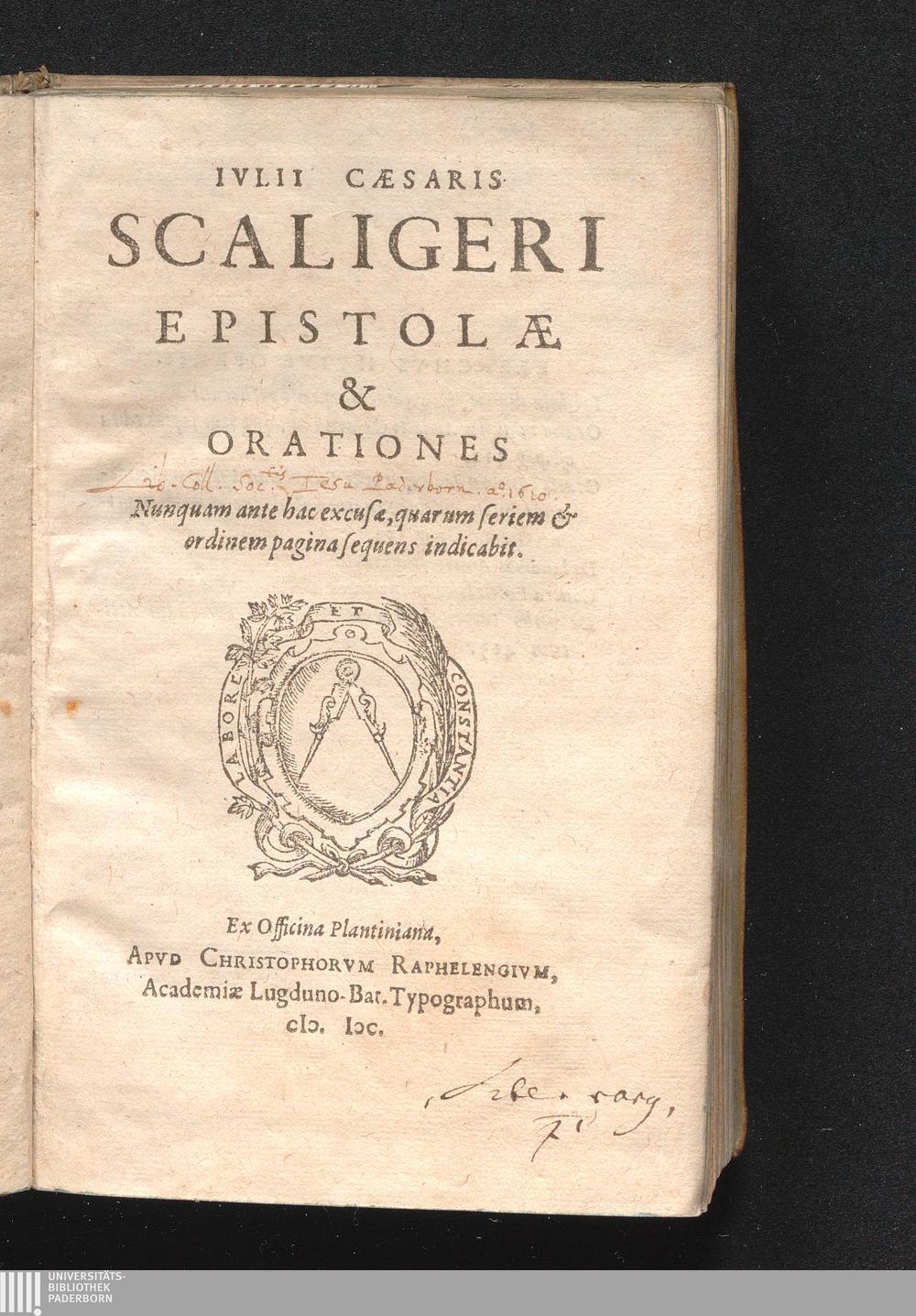 Ivlii Cæsaris|| Scaligeri|| Epistolæ|| &|| Orationes|| : Nunquam ante hac excusæ, quarum seriem [et]|| ordinem pagina sequens indicabit.||