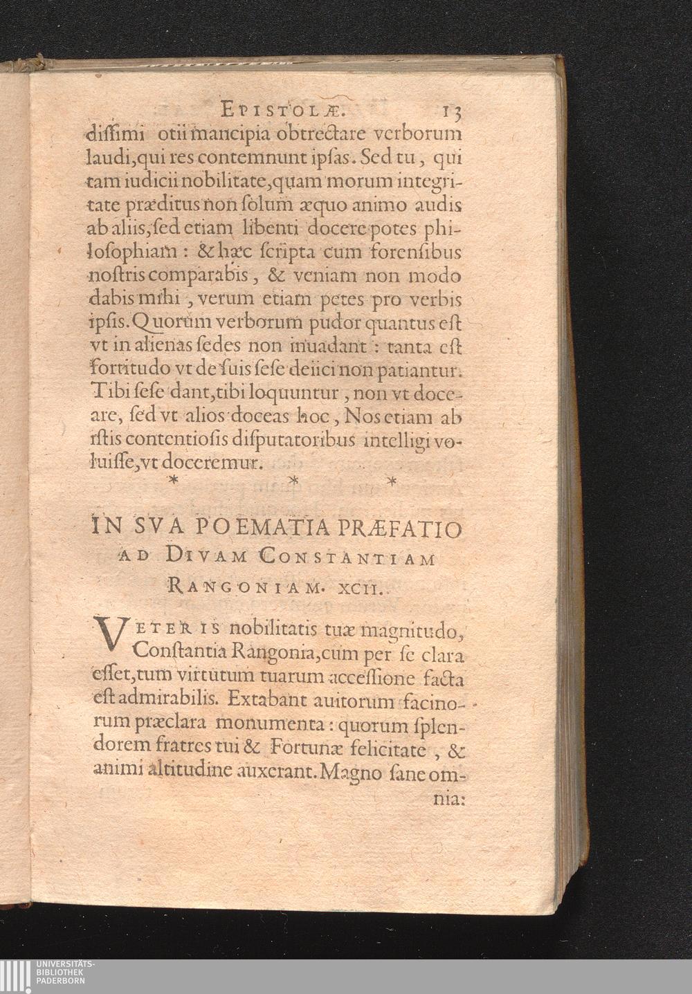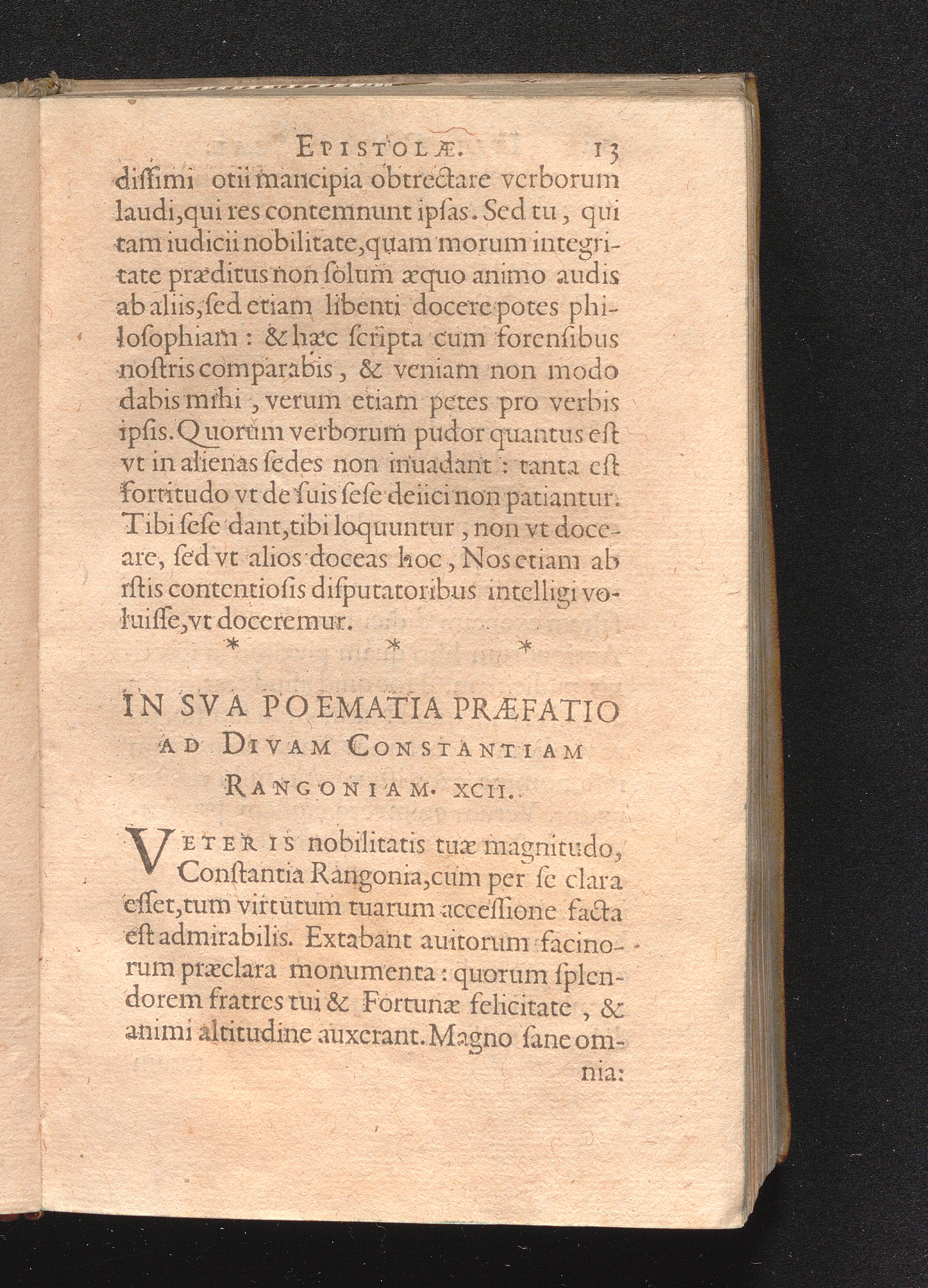 In Sva Poematia Præfatio Ad Divam Constantiam Rangoniam. XCII [i.e. III].