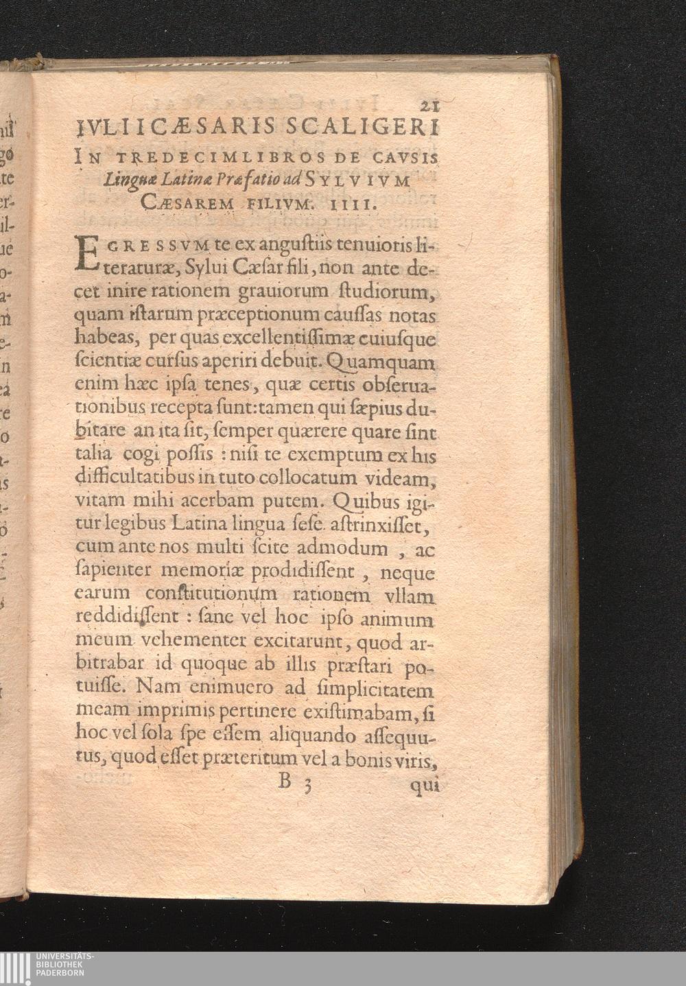 Ivlii Cæsaris Scaligeri In Tredecimlibros De Cavsis Linguæ Latinæ Præfatio ad Sylvivm[...]