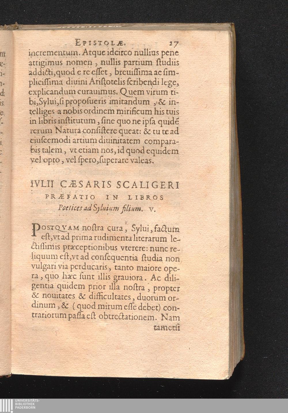 Ivlii Cæsaris Scaligeri Præfatio In Libros Poetices ad Syluium filium. V.