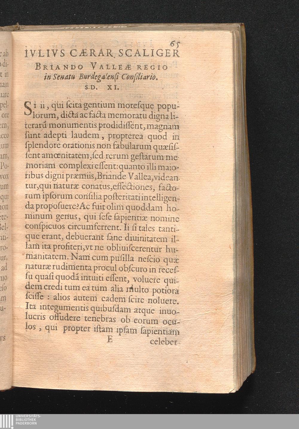 Ivlivs Cærar Scaliger Briando Valleæ Regio in Senatu Burdegalensi Consiliario. S.[...]