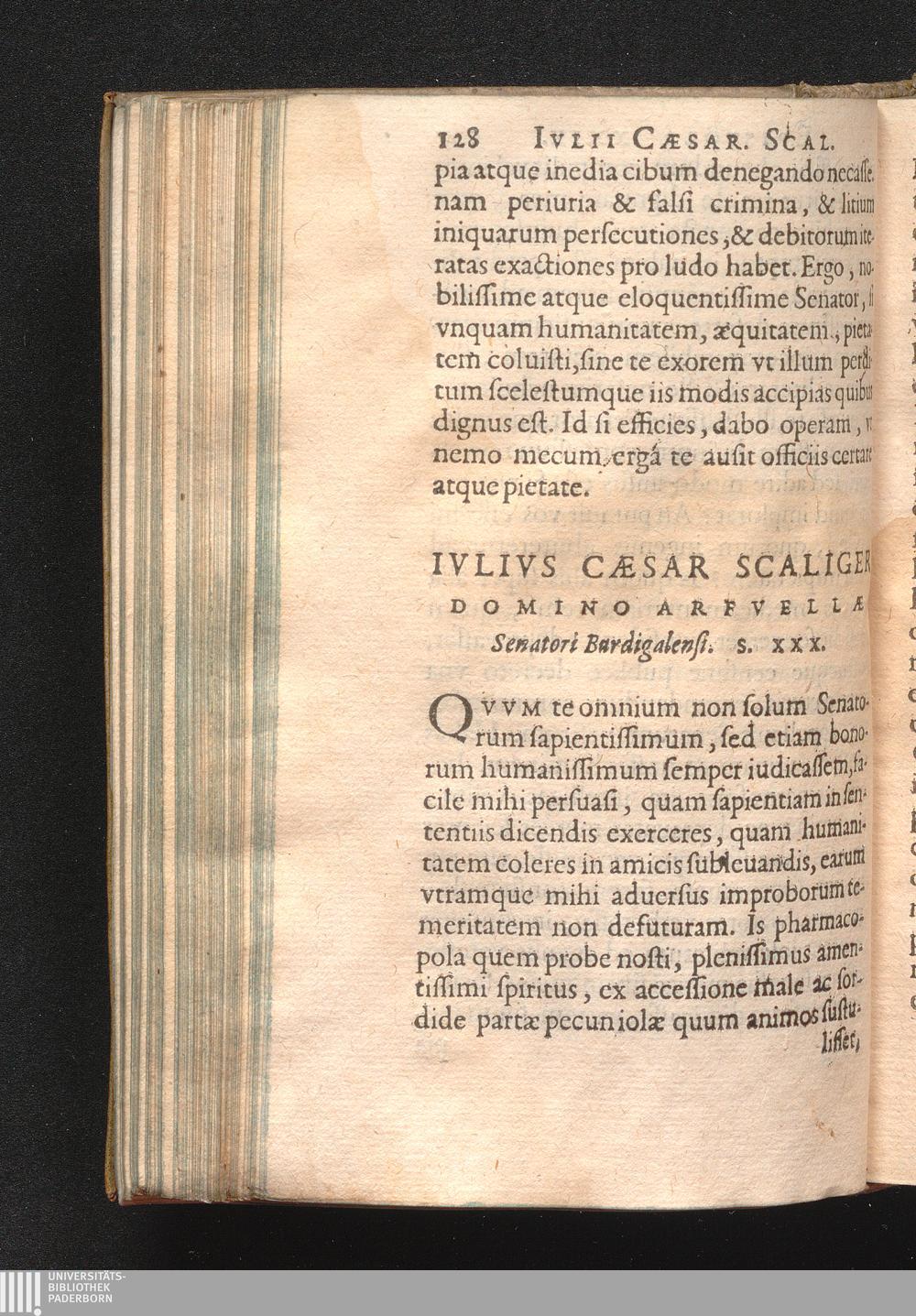 Ivlivs Cæsar Scaliger Domino Arfvella Senatori Burdigalensi. S. XXX.